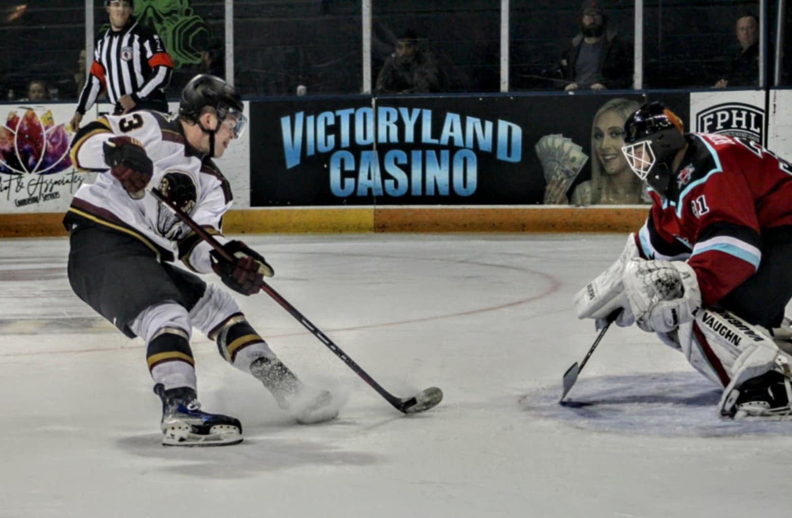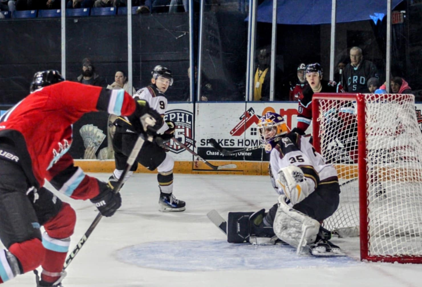In the third frame, Ryan Hunter extended the River Dragons’ lead to 3-1 at 5:35. Justin MacDonald scored twice, once at 11:13 and again at 15:29, to achieve his second hat trick of the season.