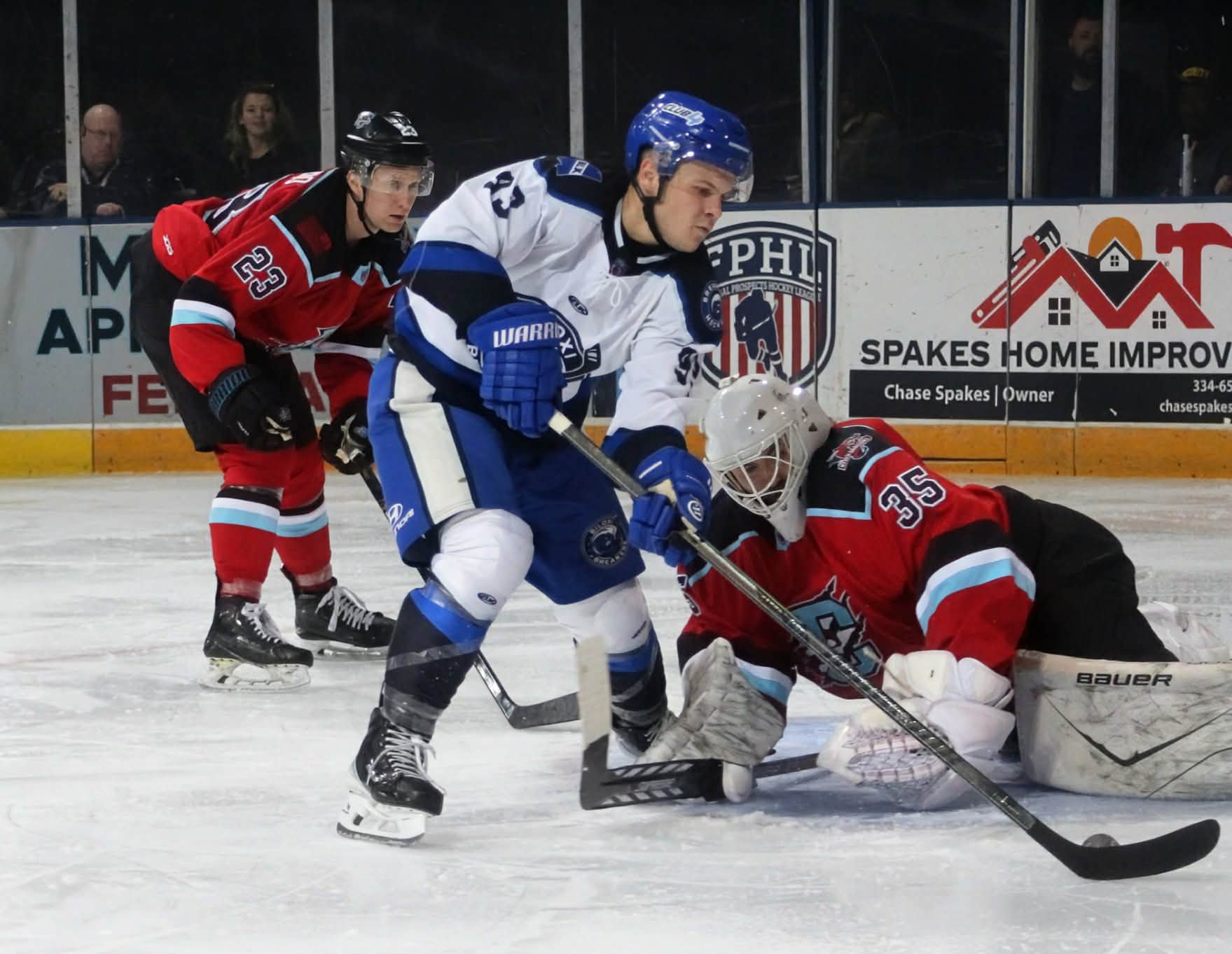 At 4:25, Kyle Heitzner managed to poke an unattended rebound through the legs of Tyler Roy to give Biloxi an early 1-0 lead over Columbus.