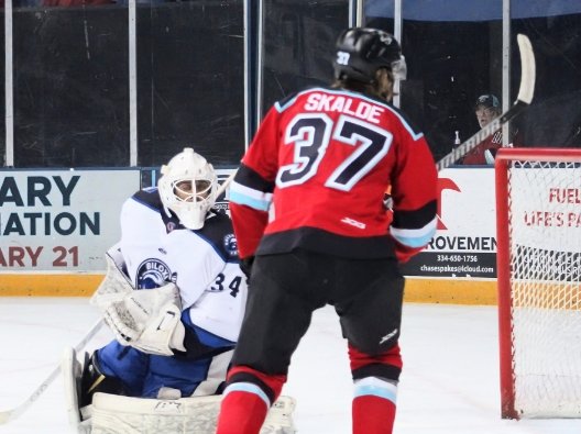 Alex Storjohann answered for Columbus at 18:13 to even the score before Skate Skalde buried his first goal of the season at 19:08.