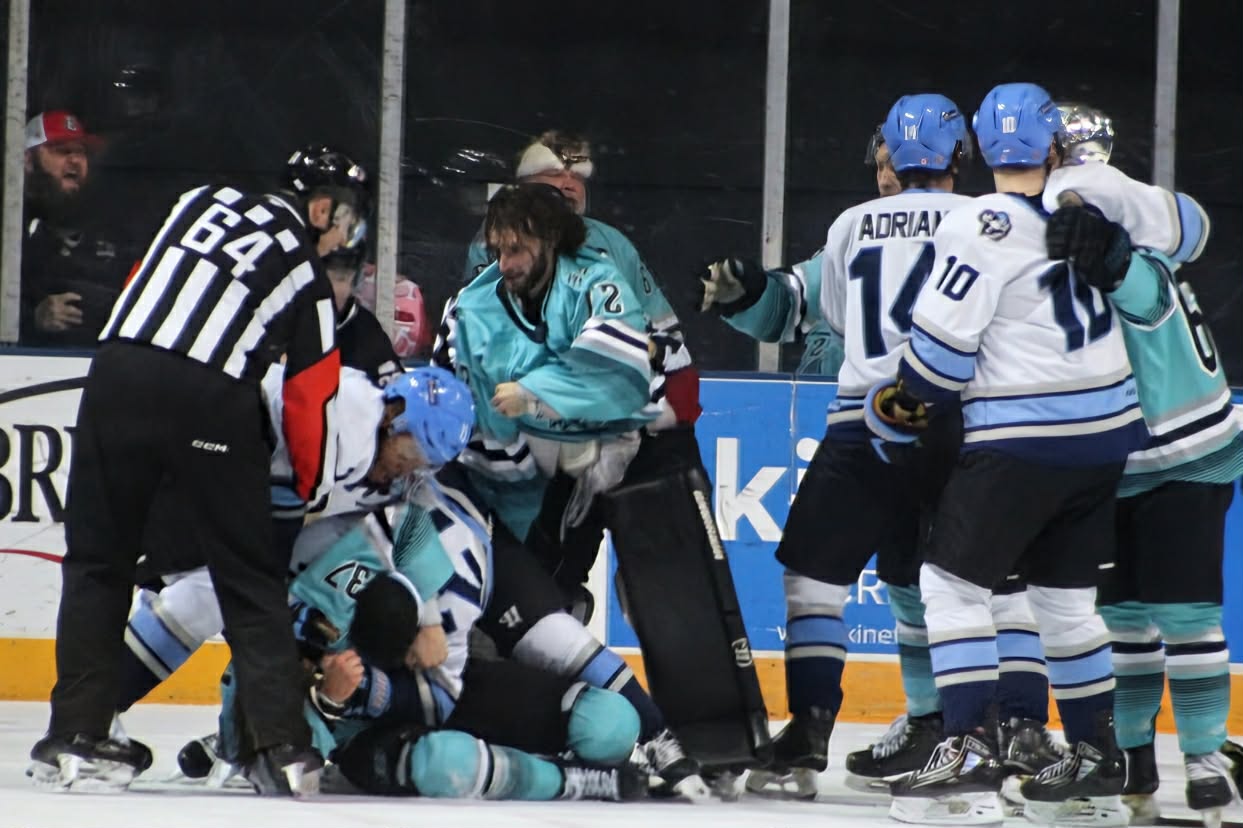 Columbus’ Goaltender Trevor Babin was penalized for Leaving the Crease and Slashing, while Skate Skalde and Matthew Horan was hit with a 5- minute major for Fighting, and a Game Misconduct for Fighting After the Original Altercation.