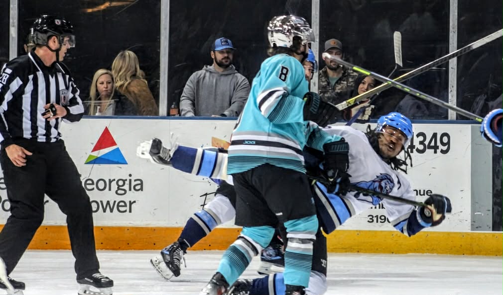 Pee Dee Ice Cats’ Nicholas Magill-Diaz, Jordan Popoff, and Divyne Apollon were also hit with a 5-minute major for Fighting, and a Game Misconduct for Fighting After the Original Altercation.