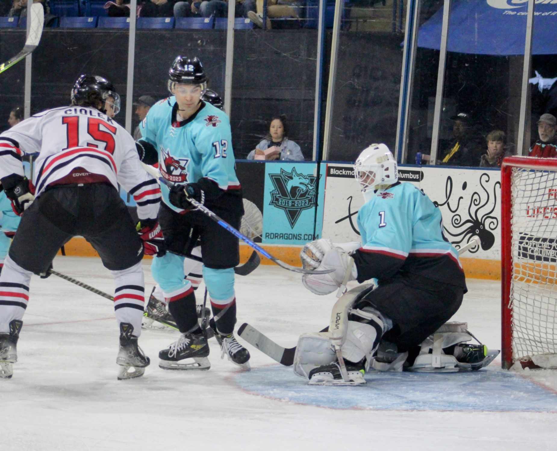 The River Dragons gave fans the thrill of watching Cody Wickline achieve a hat trick goal at 3:26, followed by Jmaeff’s second of the night at 14:01 and Slachetka’s game-ending goal at 15:46. The game concluded with the River Dragons taking the regulation win, 11-1.