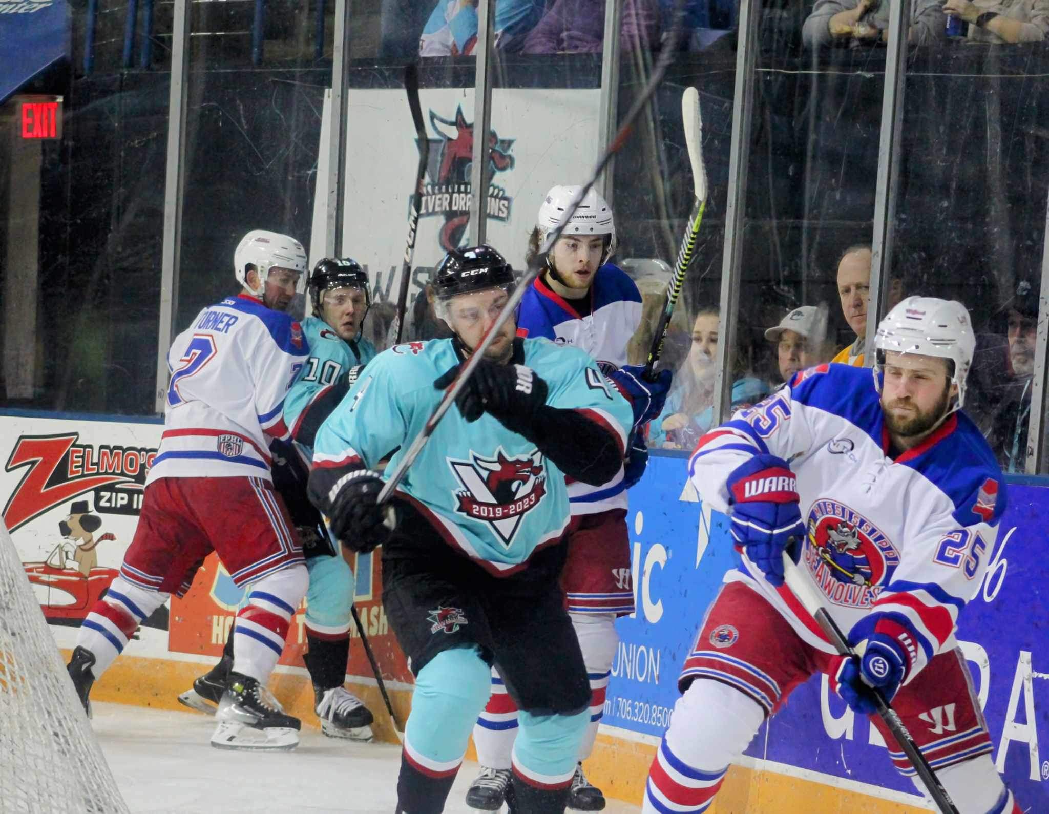 Carter Shinkaruk sniped a long shot from the blue line at 5:03 to mark the first score of the night, as the River Dragons looked to build some early momentum.