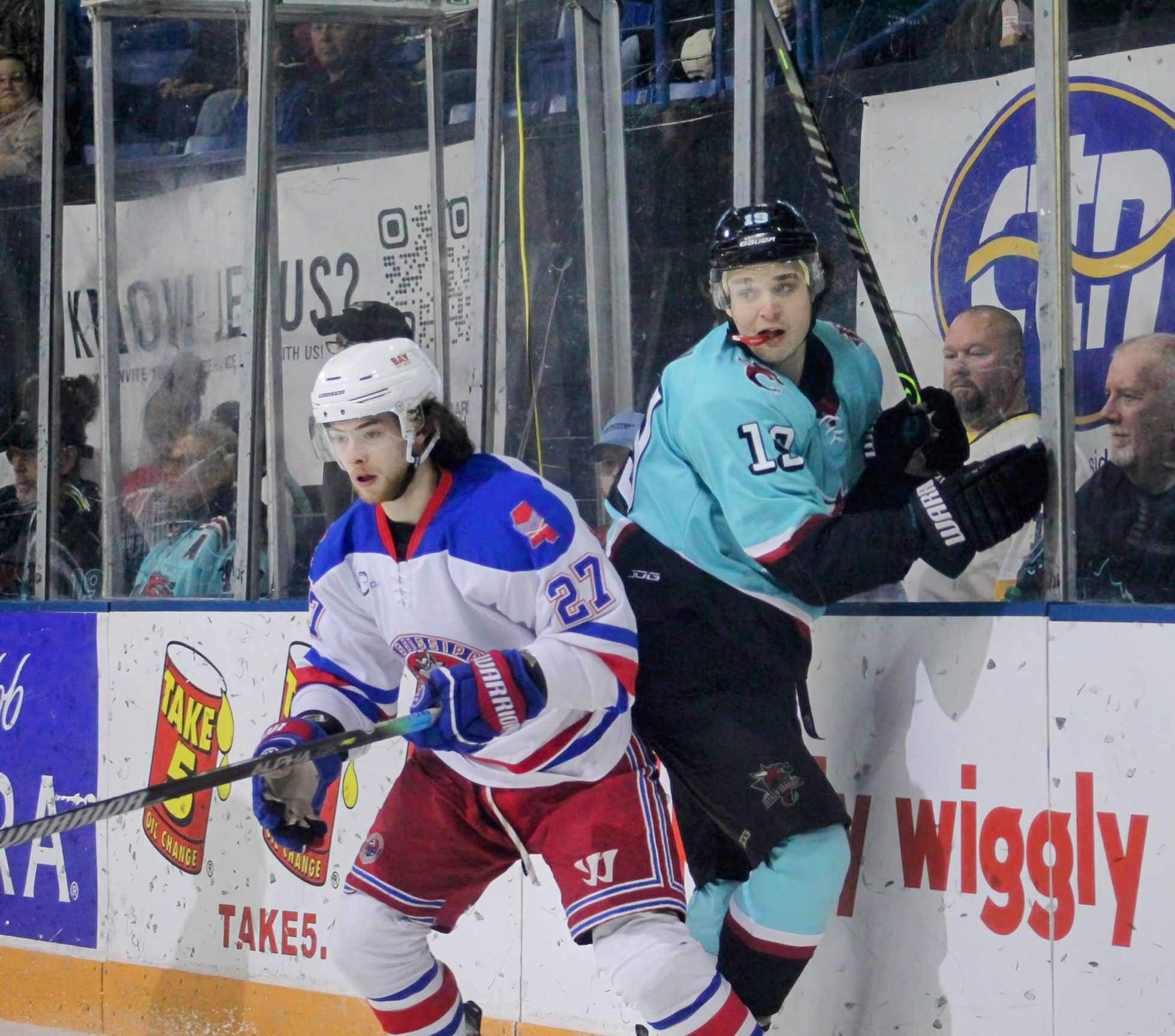 Tonight’s 3 Stars of the Game were awarded to Kyle Moore (4 goals), Ryan Hunter (1 goal, 3 assists), and Justin MacDonald (3 assists).