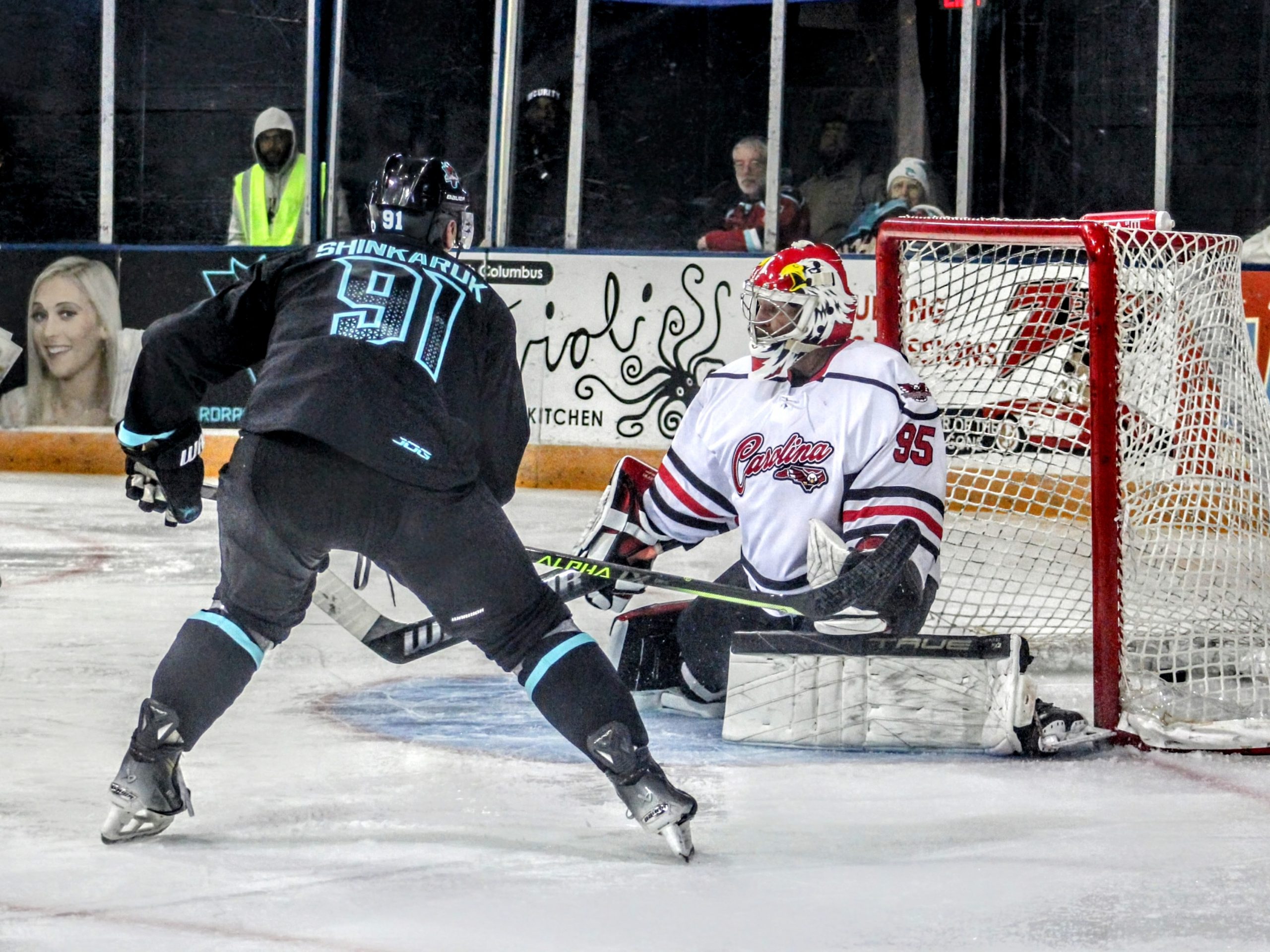 Alex Storjahann took a floating pass by MacDonald to score the River Dragons’ 7th goal of the night at 18:23, sealing the win for Columbus.