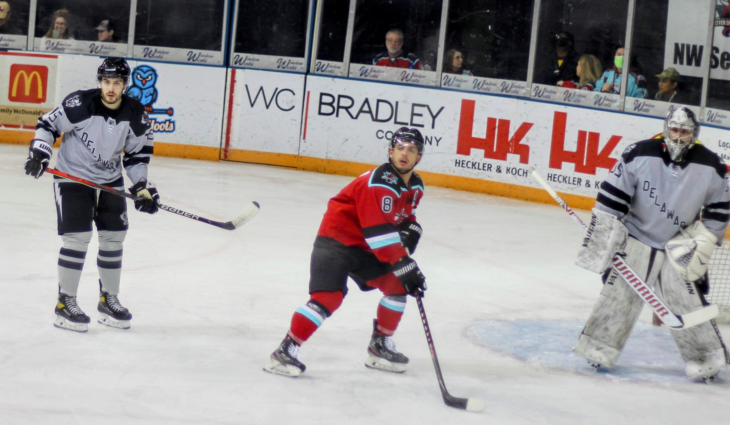 Late in the third period, Columbus picked up a pair of penalties after an MJ Graham boarding and Jay Croop roughing on the same play/ Delaware would end up scoring at the 15:54 mark of the third period on the power play to make it 3-2. Yianni Liarakos put in a backhand assisted by Alex Soucy, cutting the lead to 3-2 for Columbus. Delaware pulled Greg Harney with about a minute and a half to go and despite multiple offensive zone faceoffs couldn’t find the net as MacBurnie saved their last four shots.