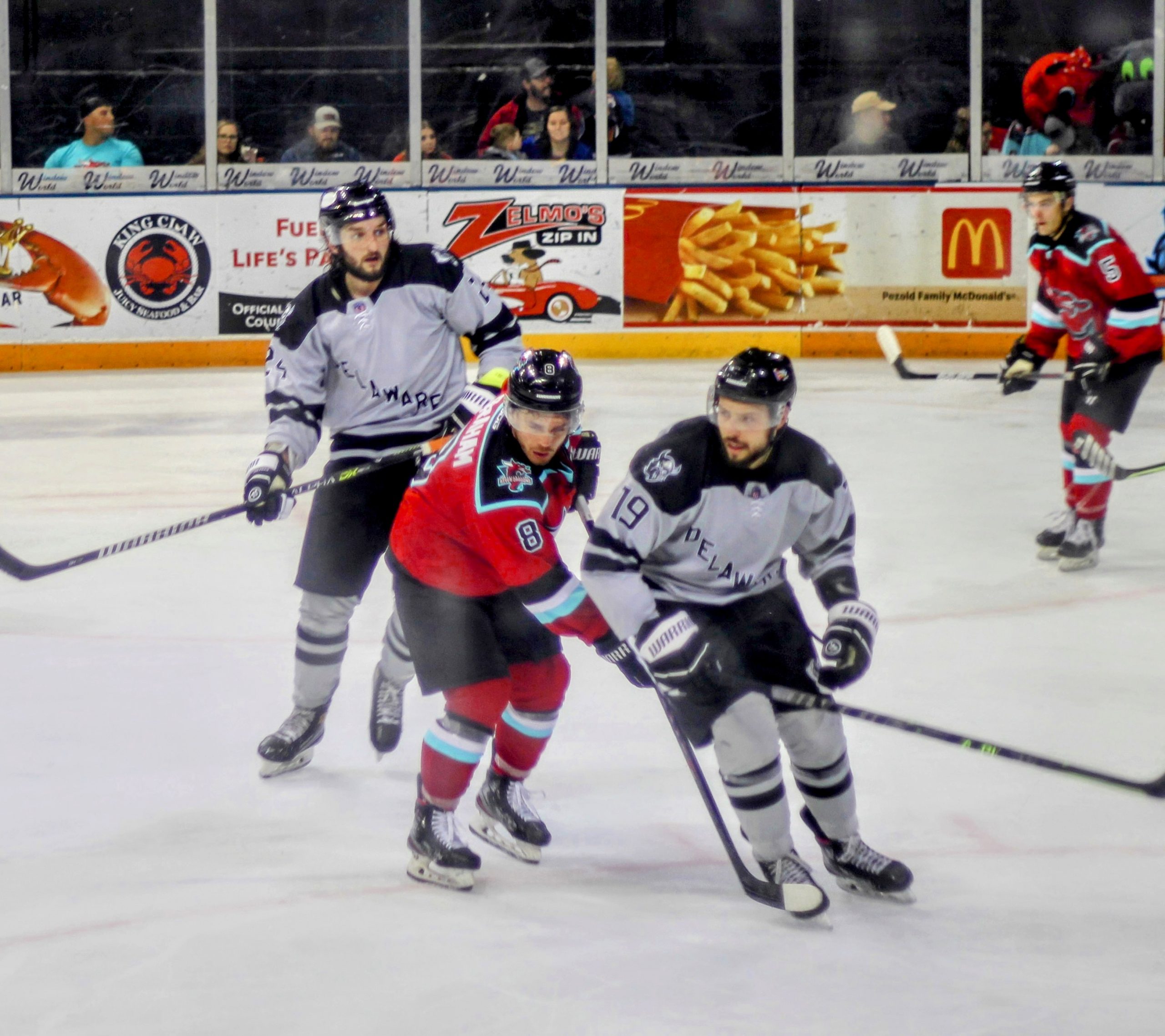 In the second period Delaware was able to mark their first tally of the night with a goal from Marc-Antoine Brouillette making its way past Bailey MacBurnie’s shoulder and over the line with about two and a half minutes off an assist from Alex Soucy, cutting the lead to 3-1 for the River Dragons, and that score would remain until the break.