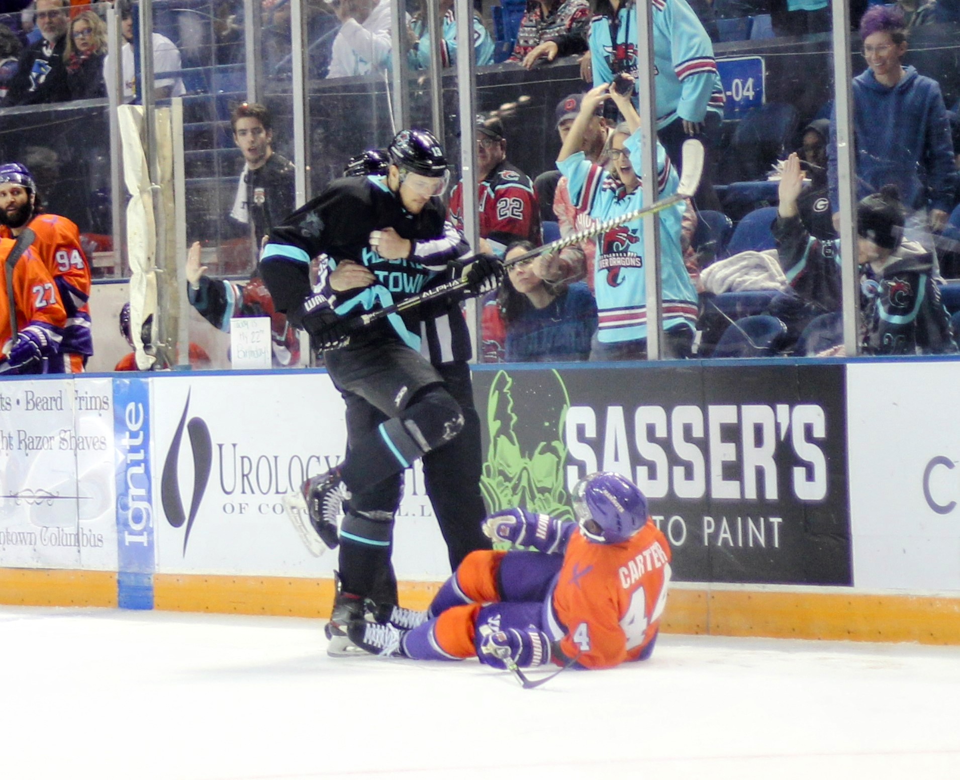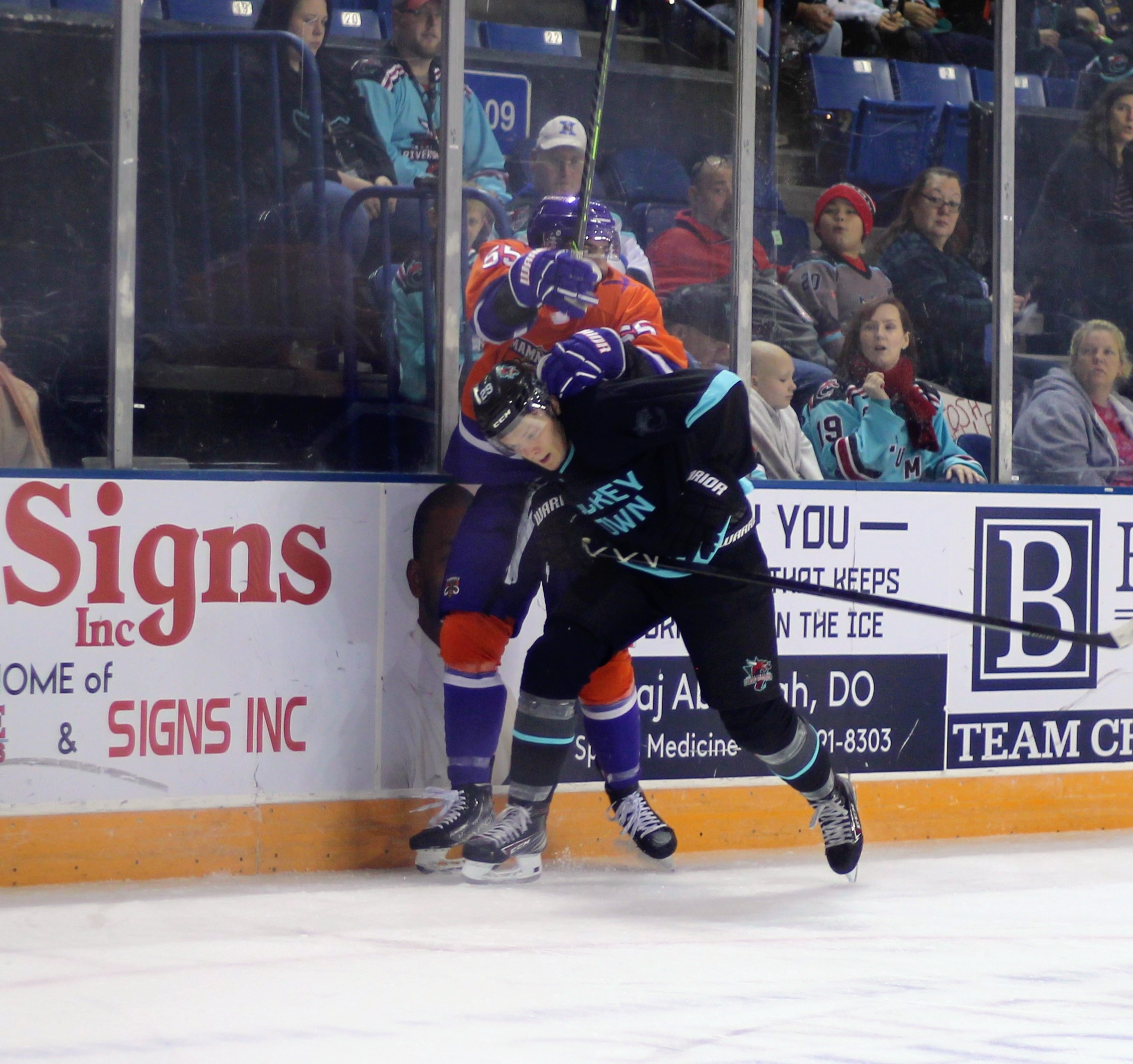 Columbus, GA.- The Columbus River Dragons scored twice in a 30-second span to turn a 3-2 deficit into a 4-3 lead en route to a 5-3 win over the Elmira Mammoth on Friday night.