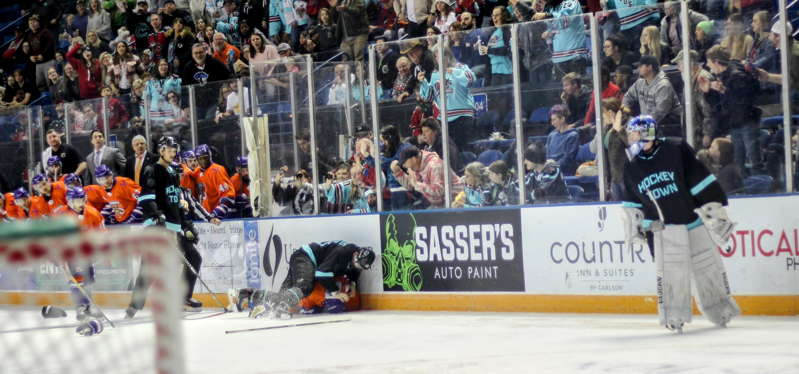 Trailing by a goal late in the third period, Austin Daae started the comeback effort with his sixth of the season at 16:16 followed at 16:46 by Thomas Aldworth’s second of three goals on the night which turned out to be the game winner. Aldworth would cement the win and the hat trick with an empty net goal at 19:57 for the 5-3 final.