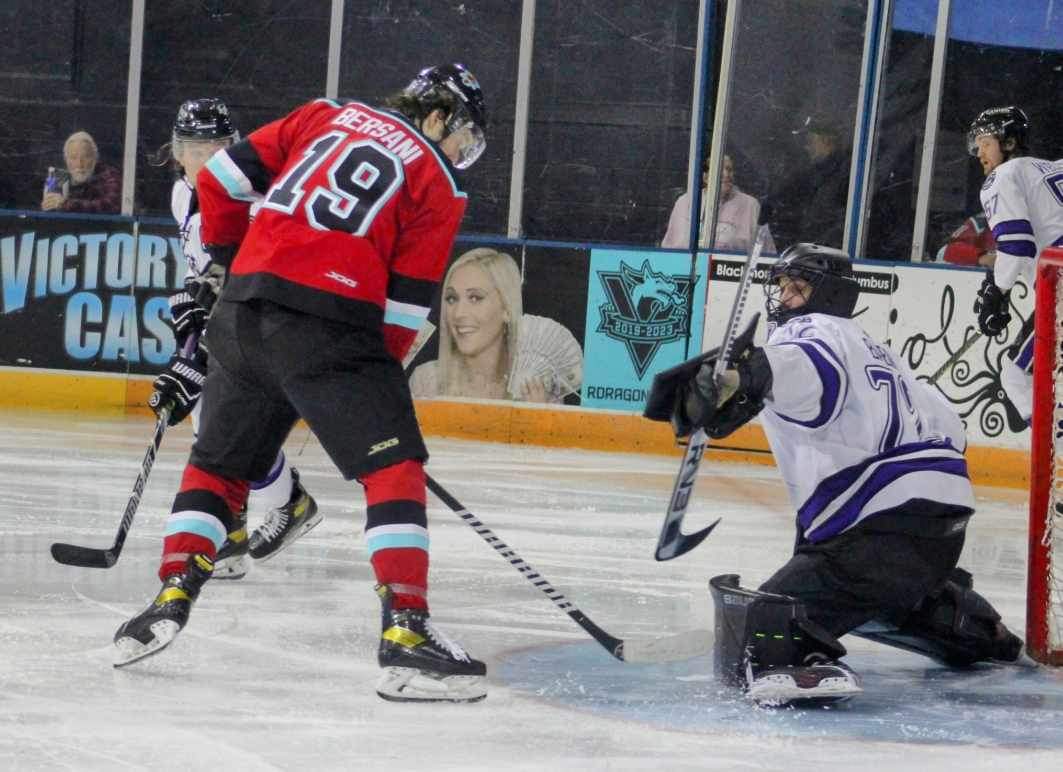 The River Dragons dominated the Rockers through the first two frames of regulation, 3-0 with goals made by Justin MacDonald (11:30, 1st period), Carter Shinkaruk (14:41, 1st period), and Alex Storjahann (6:02, 2nd period).