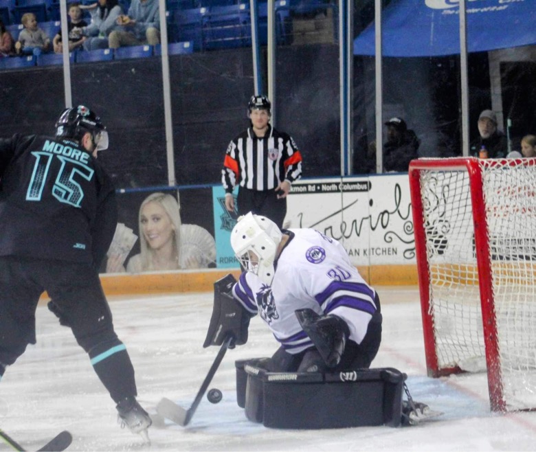 Lane King kept the Rockers alive, scoring on a well-laid pass by TJ Sneath at 19:20 to close out the second period, 6-3.