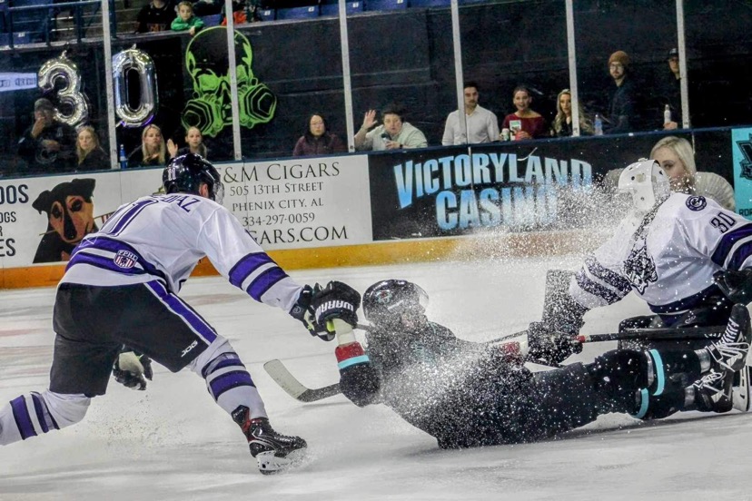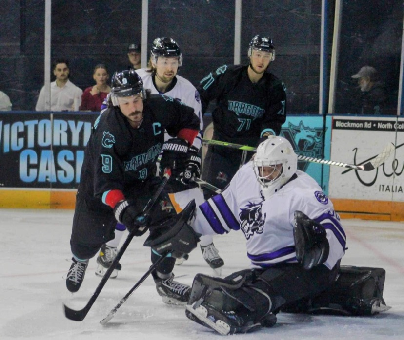 The third frame kicked off in a frenzy. In just 53 seconds, Kirk Underwood drilled one into the back of the net to put the River Dragons up, 7-3.