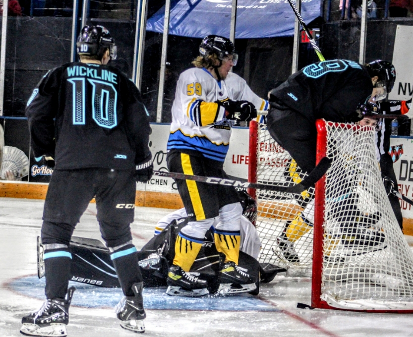 COLUMBUS, GA – “Hockey Night on the Chattahoochee” started rough with both teams looking to settle unfinished business from the River Dragon’s 4-2 win the previous night against the Blue Ridge Bobcats.