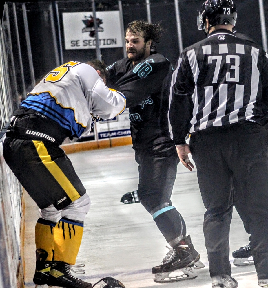 At 6:14, Nolan Slachetka added to the Columbus lead with assist by #Alexander Jmaeff and #19 Hunter Bersani, followed shortly thereafter with a heated slugfest between Egos Dolkart (Blue Ridge) and Nathan Balkwill (Columbus). The Bobcat’s Andrei Ivanov also exchanged blows with the River Drangon’s #18 Nathan Balkwill.