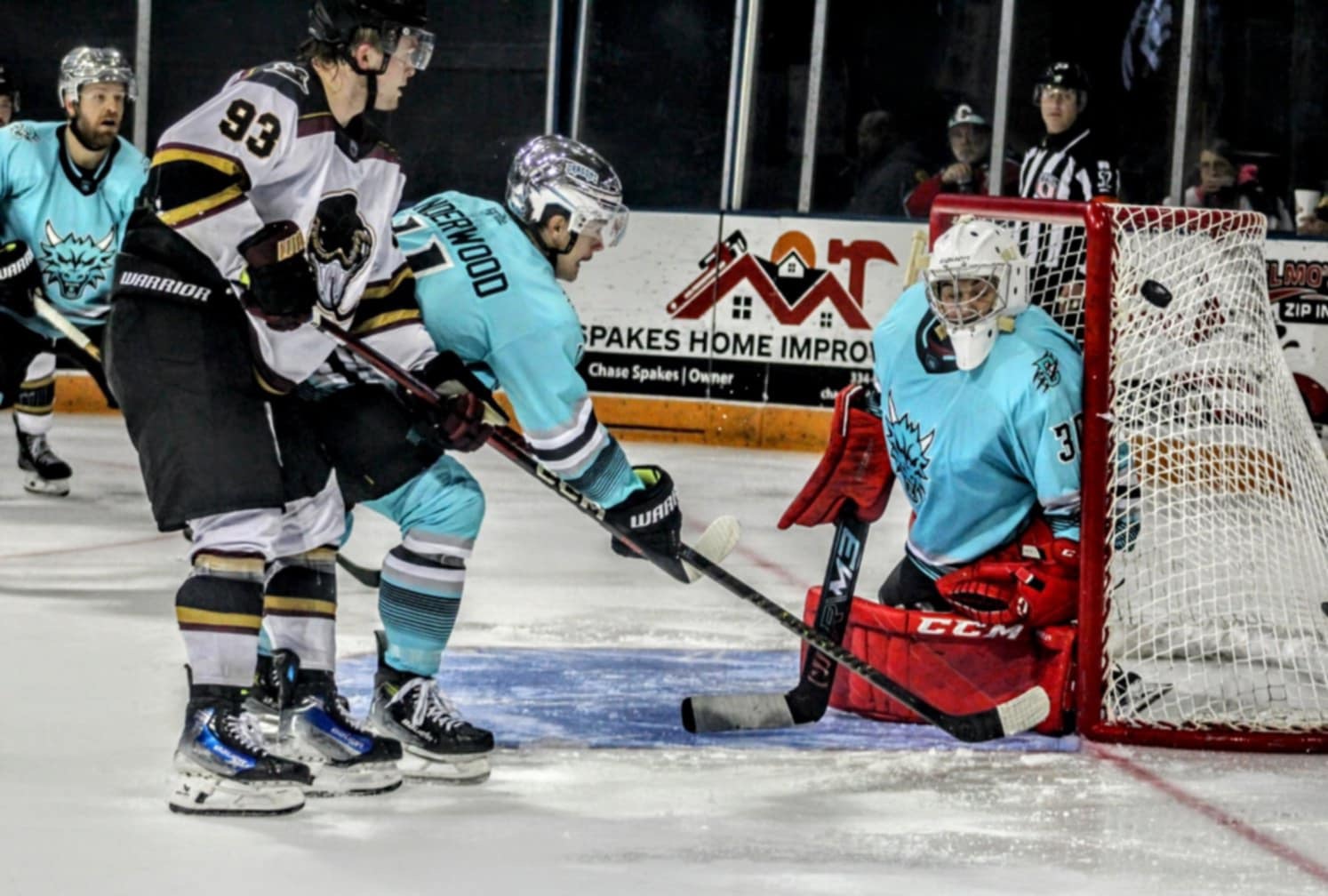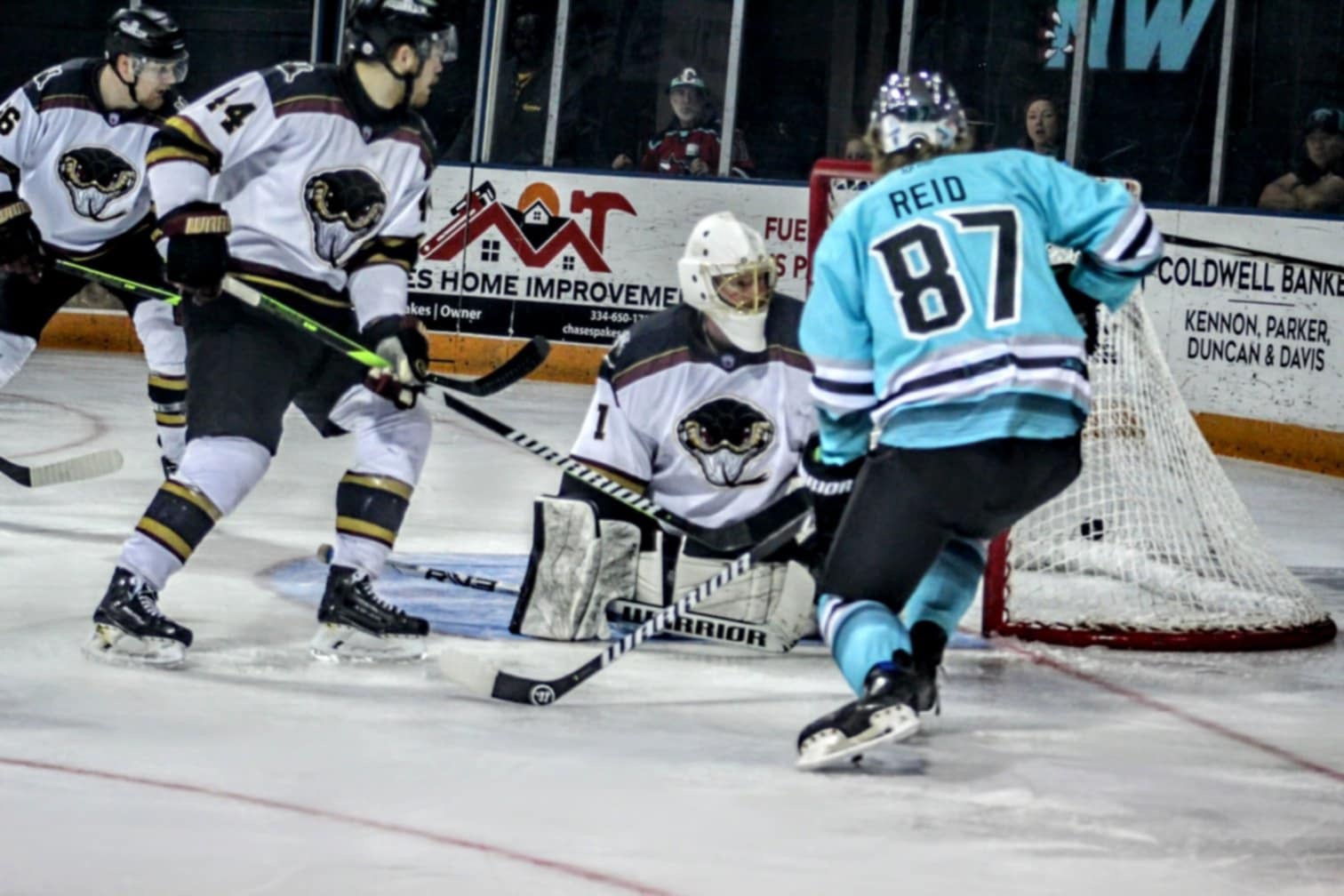 Columbus scored 4 goals in the first period, starting with Austin Daae at 4:42 and followed by Tristan Reid’s first pro goal at 10:39. Both goals were scored on a power play.
