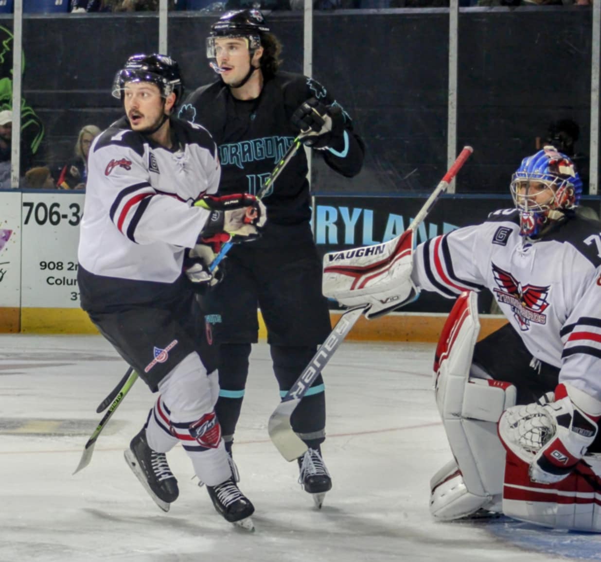Columbus, GA – William Lavalliere sparkled for 65 minutes on Saturday night, but his 37 saves were not enough as the Columbus River Dragons dropped a shootout decision to the Carolina Thunderbirds 3-2.