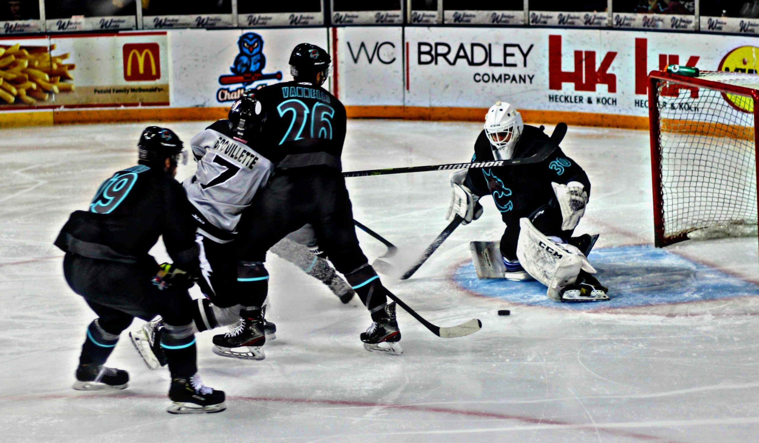 After a Edgars Ozolinsh roughing penalty late in the first period, Marc-Antoine Brouillette scored on the power play at the 17:19 mark with Artem Alekhin finding him on the backdoor, tying the game at 1-1.