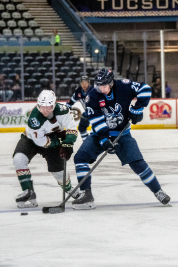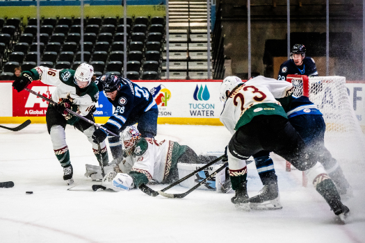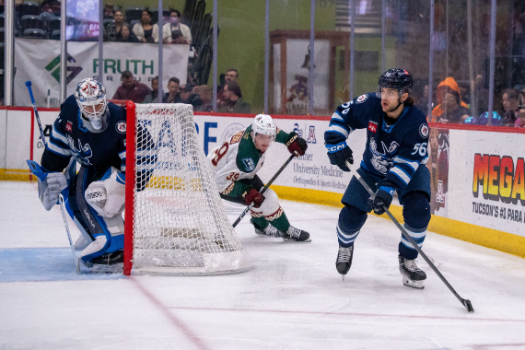 Three Roadrunners recorded multi-point performances. Forward Cameron Hebig led all skaters with three points from a pair of power-play goals and an assist. Tucson captain Austin Poganski had a goal and an assist, and defenseman Max Szuber had two assists.
