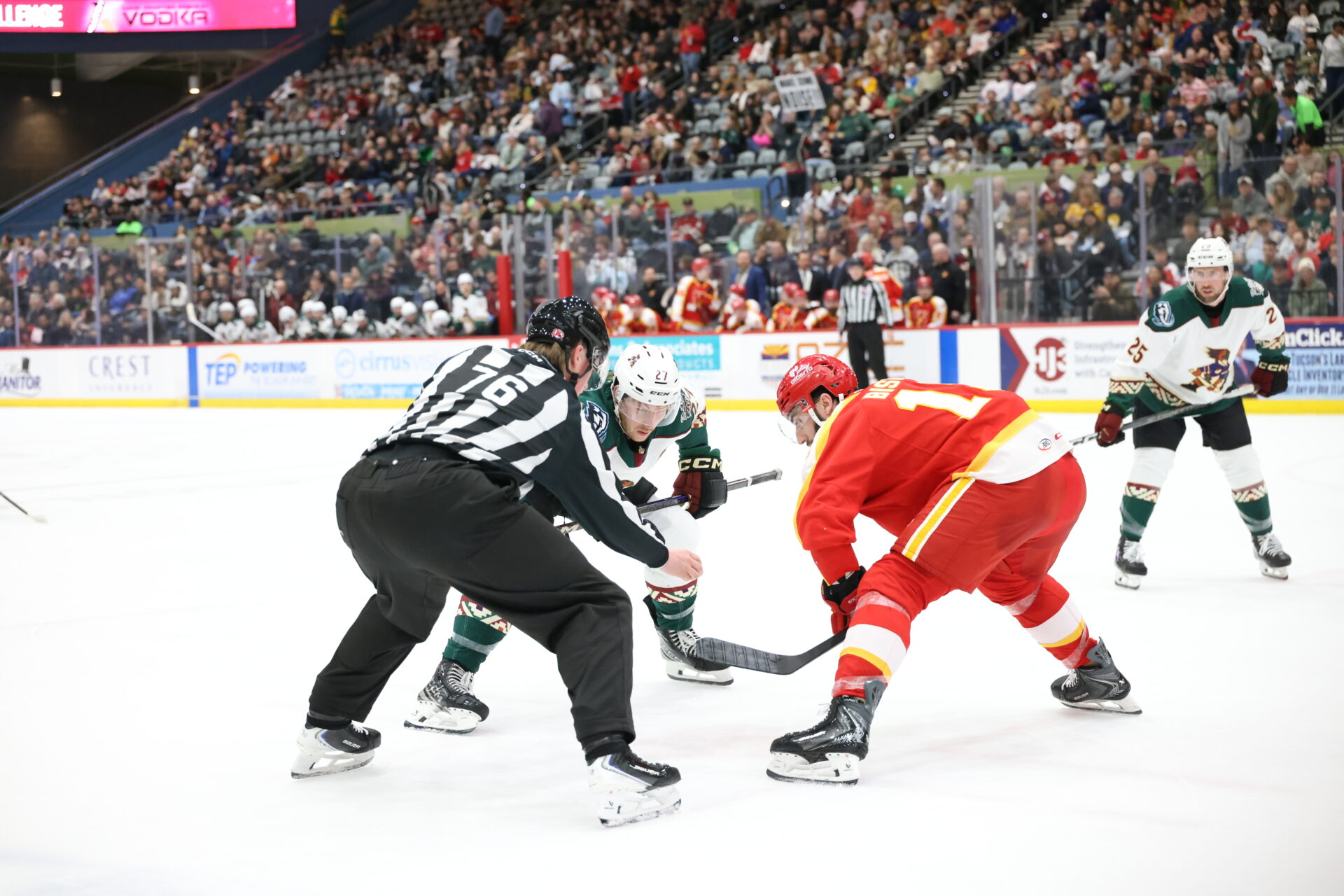Frk finally got Calgary on the board, snapping a shot from the slot after a tidy feed from Artem Grushnikov, whose assist marked his first AHL point of the season.