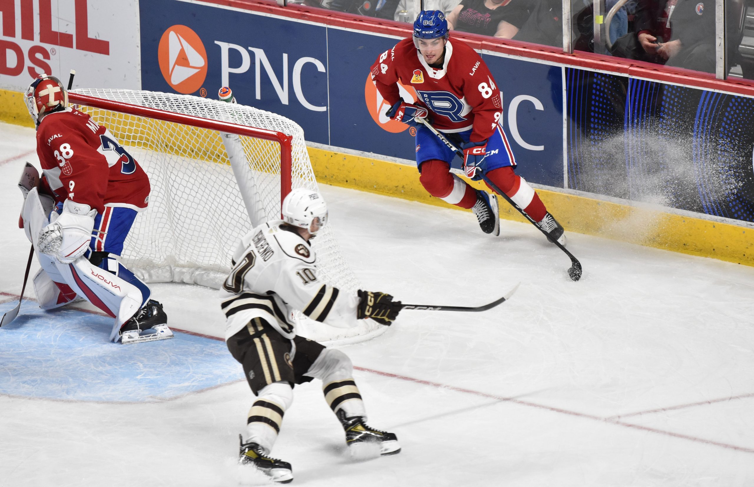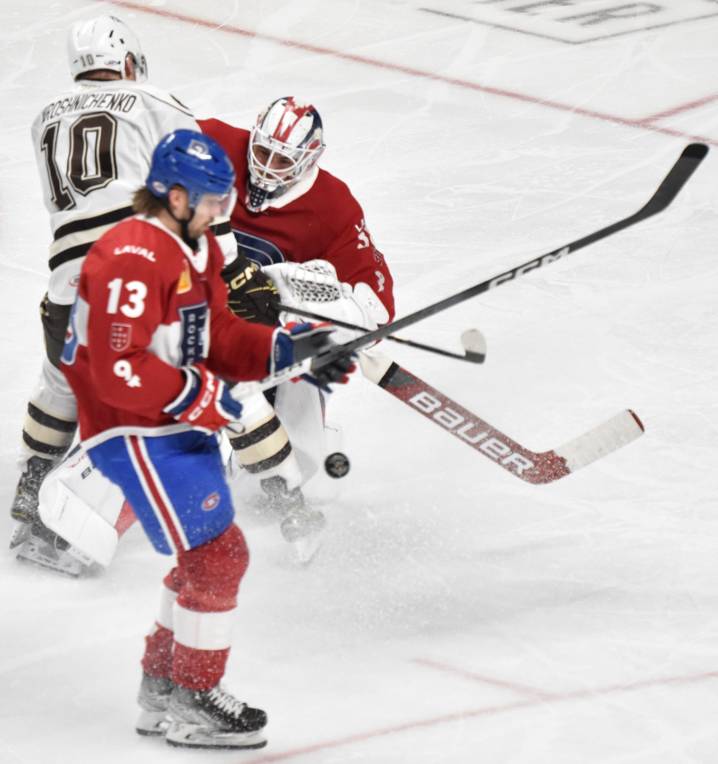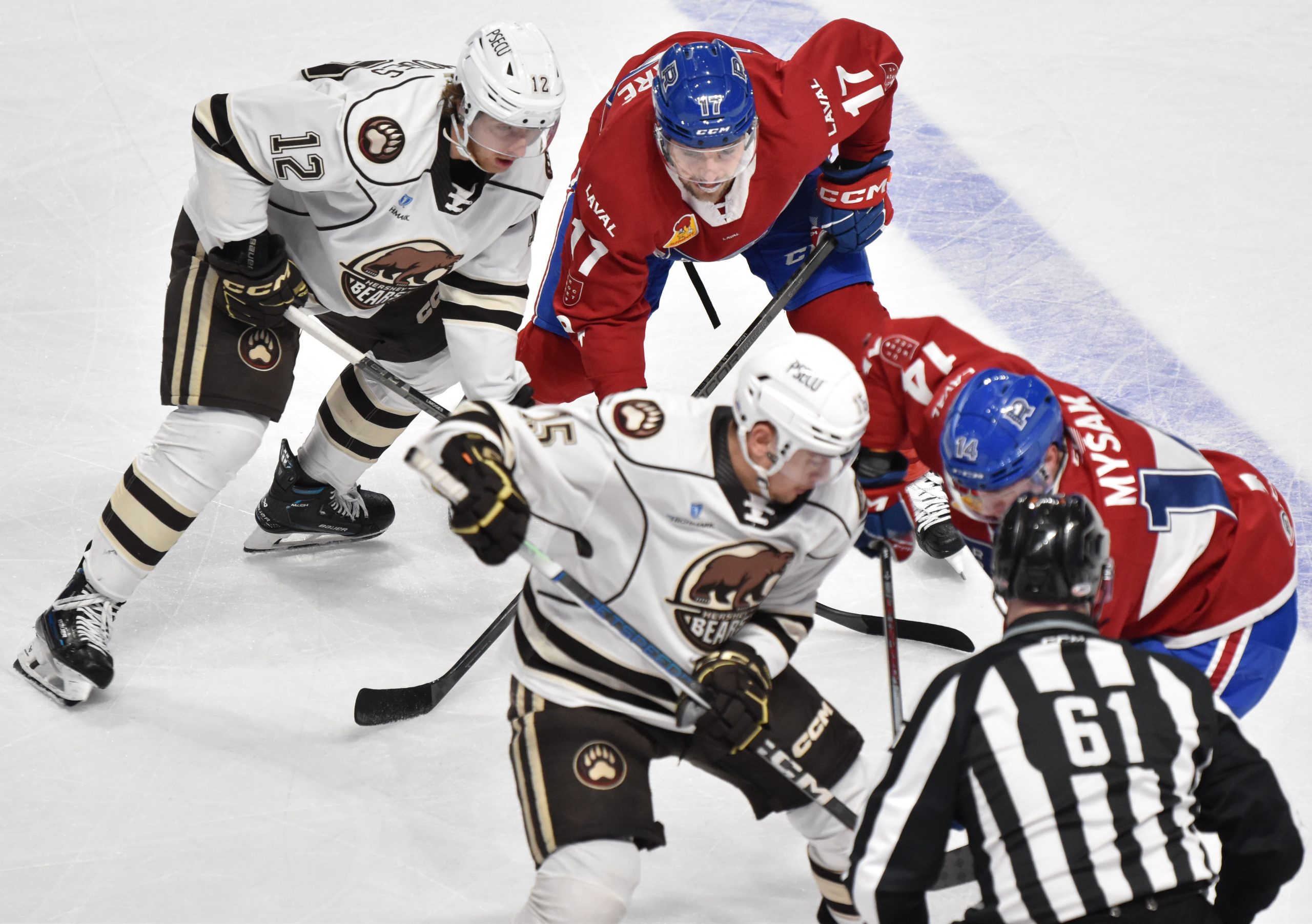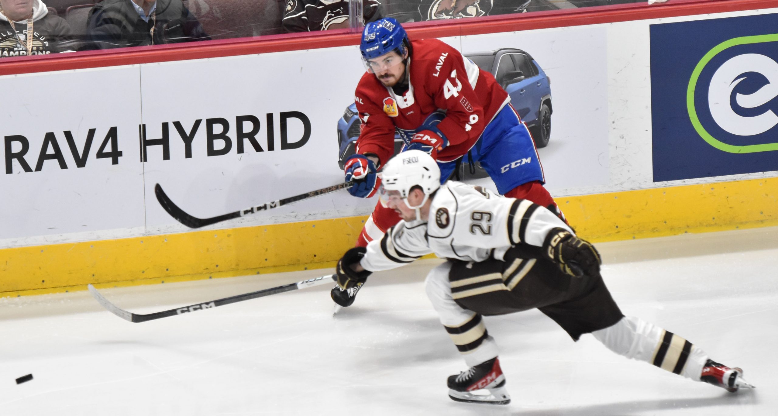 William Trudeau stopped Hershey’s run with a sharp-angle shot from the left wing boards that beat Hunter Shepard above his right shoulder to get Laval on the board at 15:37.