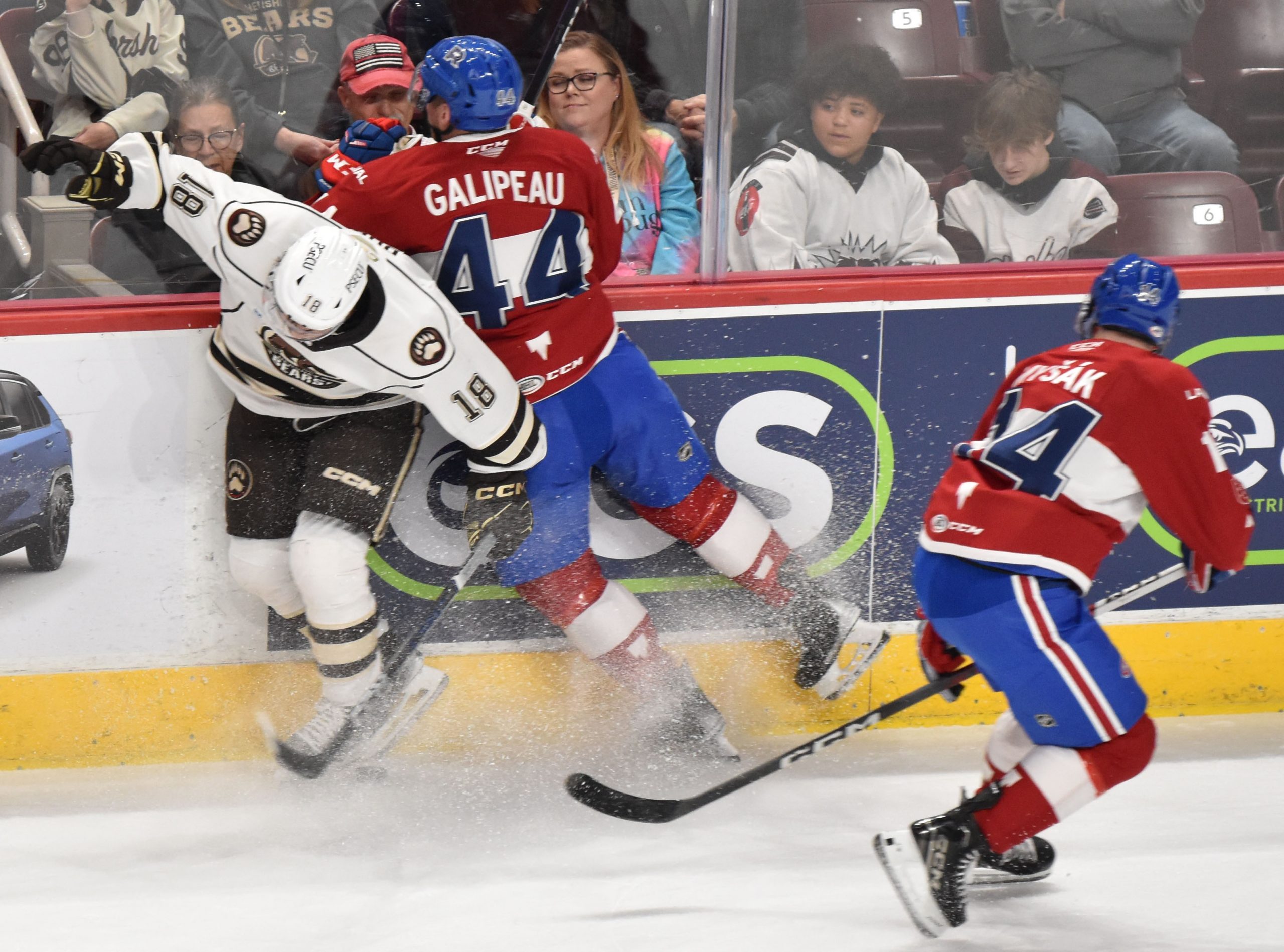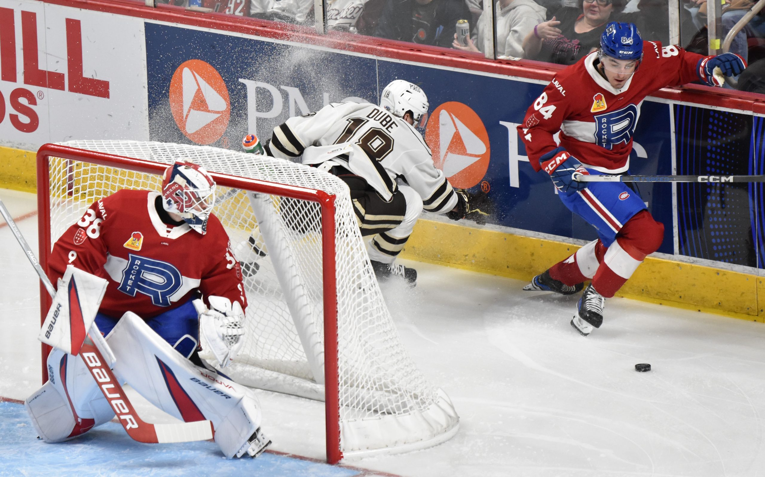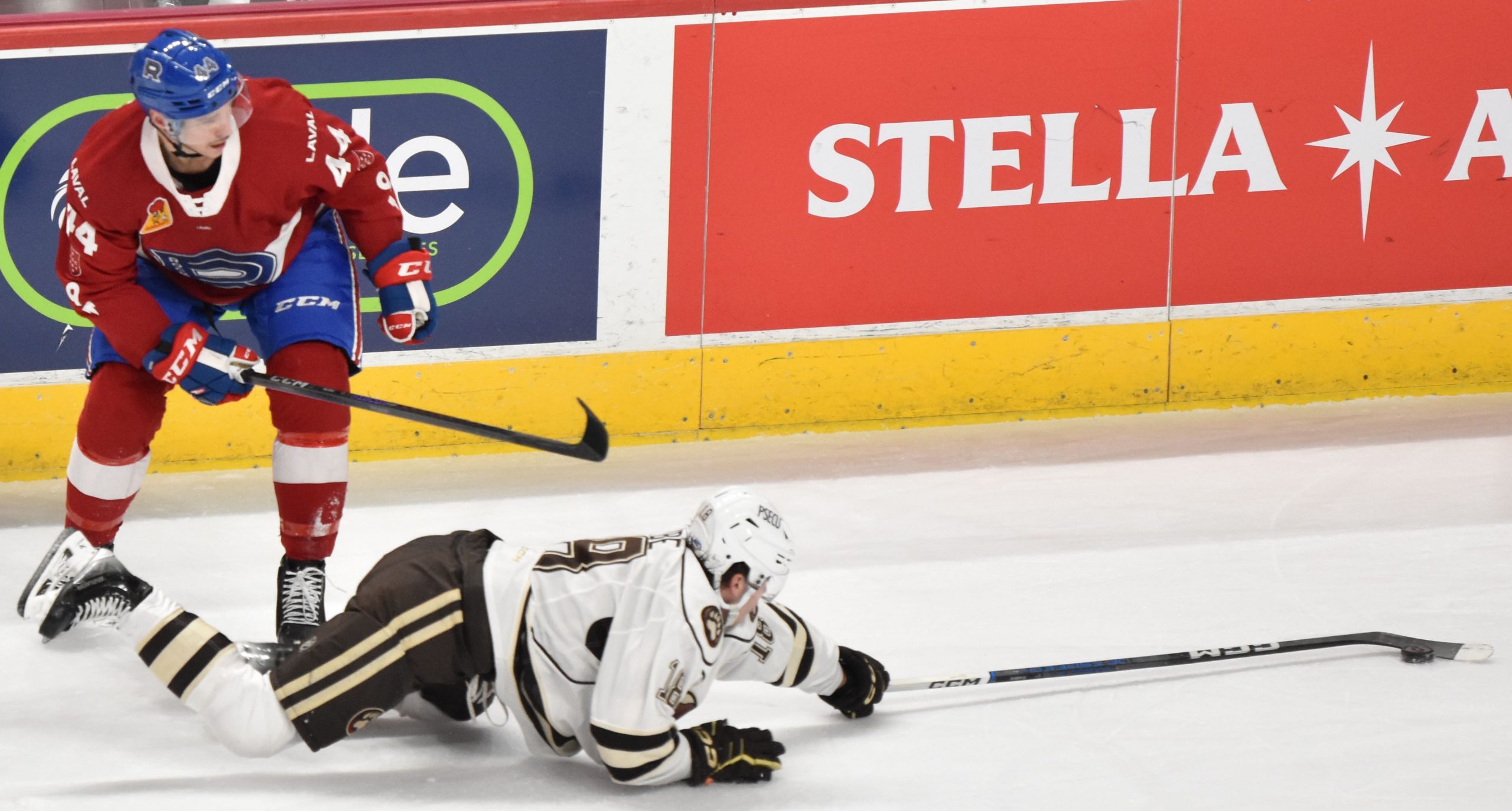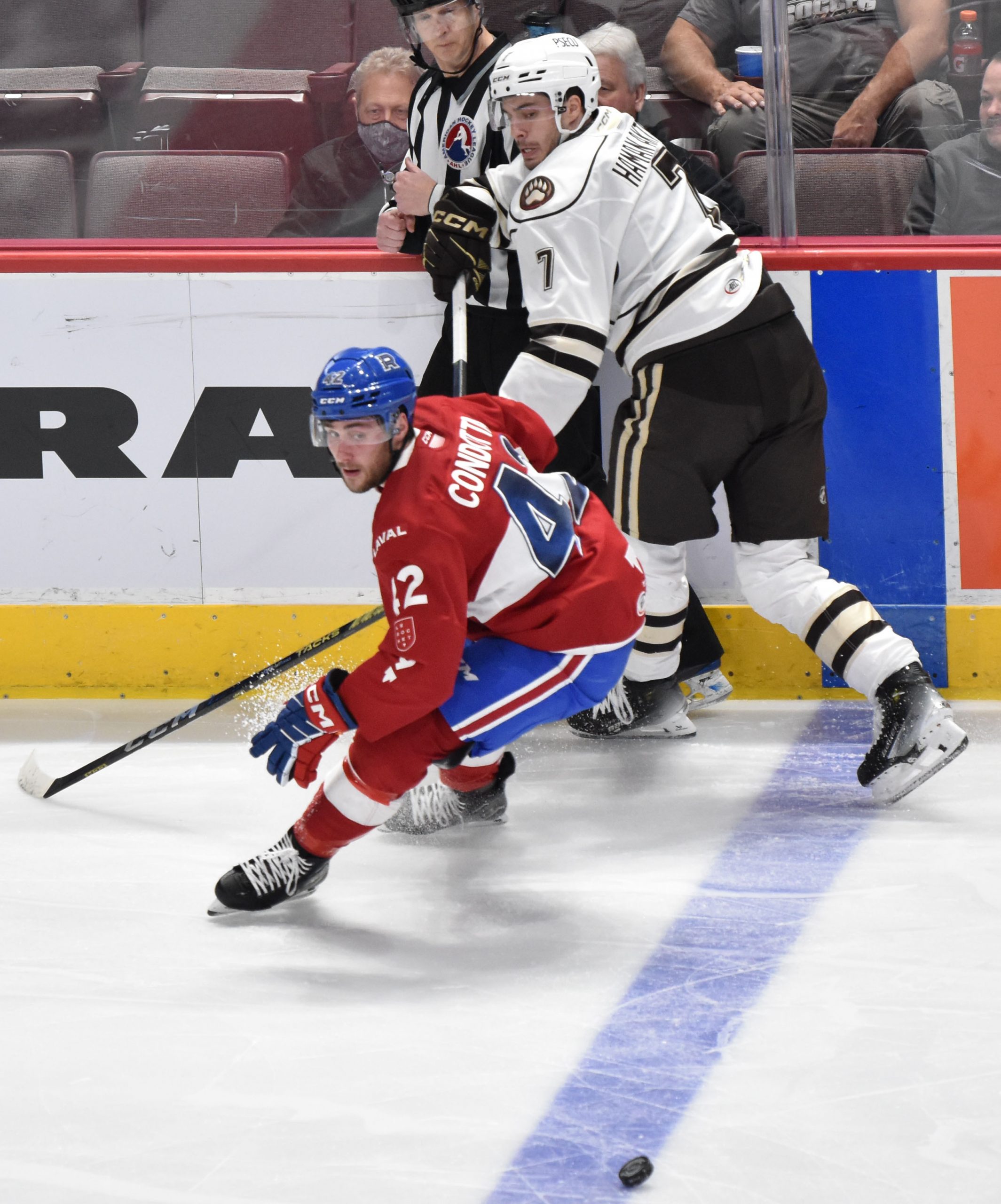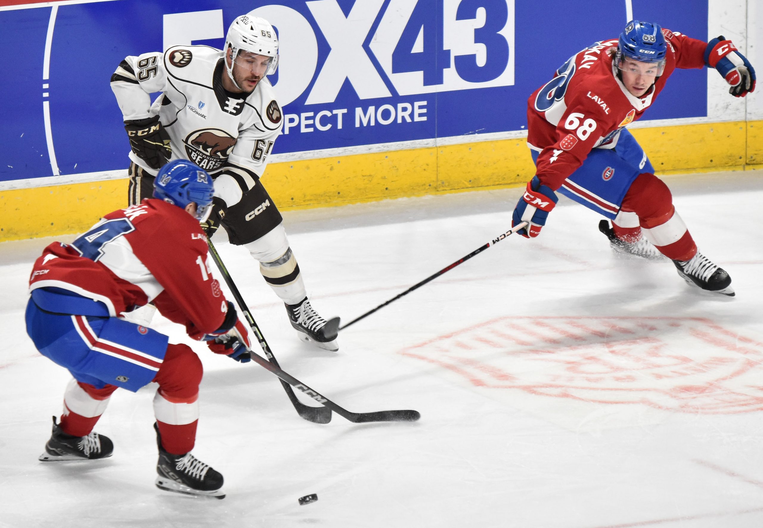 William Trudeau stopped Hershey’s run with a sharp-angle shot from the left wing boards that beat Hunter Shepard above his right shoulder to get Laval on the board at 15:37.