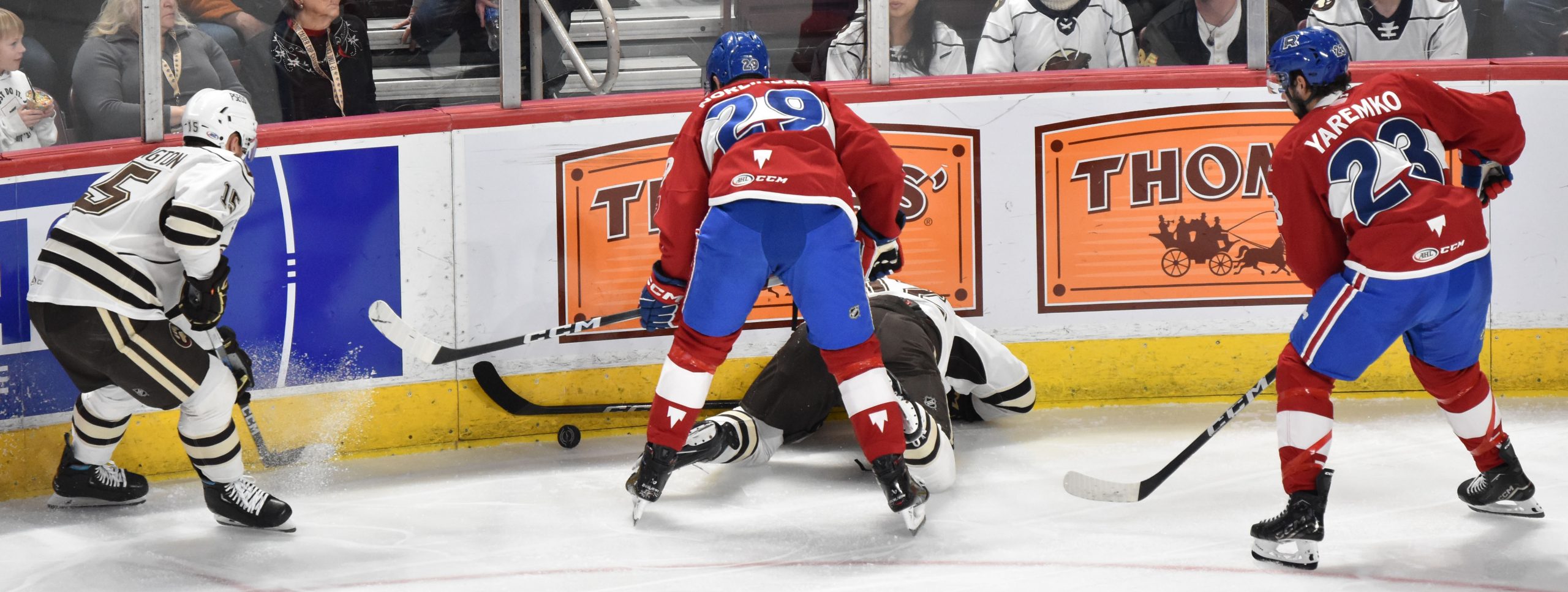 Garrett Roe scored his first three American Hockey League goals in over a decade and enjoyed his first career four-point night in the AHL to lead the Hershey Bears (21-6-0-0) to a 7-1 win over the Laval Rocket (7-13-3-2) in front of a crowd of 9,716 on Saturday night at GIANT Center. Hershey’s seven goals was the most scored by the club in a game this season and the six-goal differential matched the largest margin of victory by the Bears in a game in the campaign.