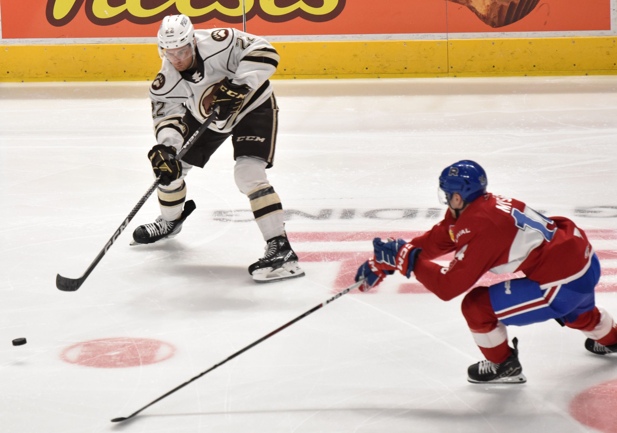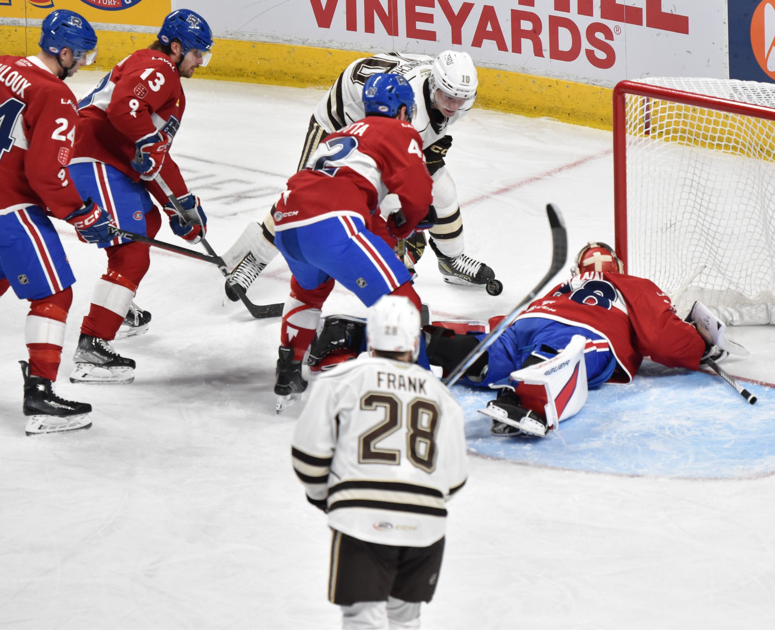 Roe and Hendrix Lapierre broke into the Laval zone on a 2-on-1 early in the first period that ended with Roe burying a pass from Lapierre past Strauss Mann for his first goal of the season and his first AHL goal since April 14, 2013 as a member of the Adirondack Phantoms. Logan Day added a secondary helper on the tally.