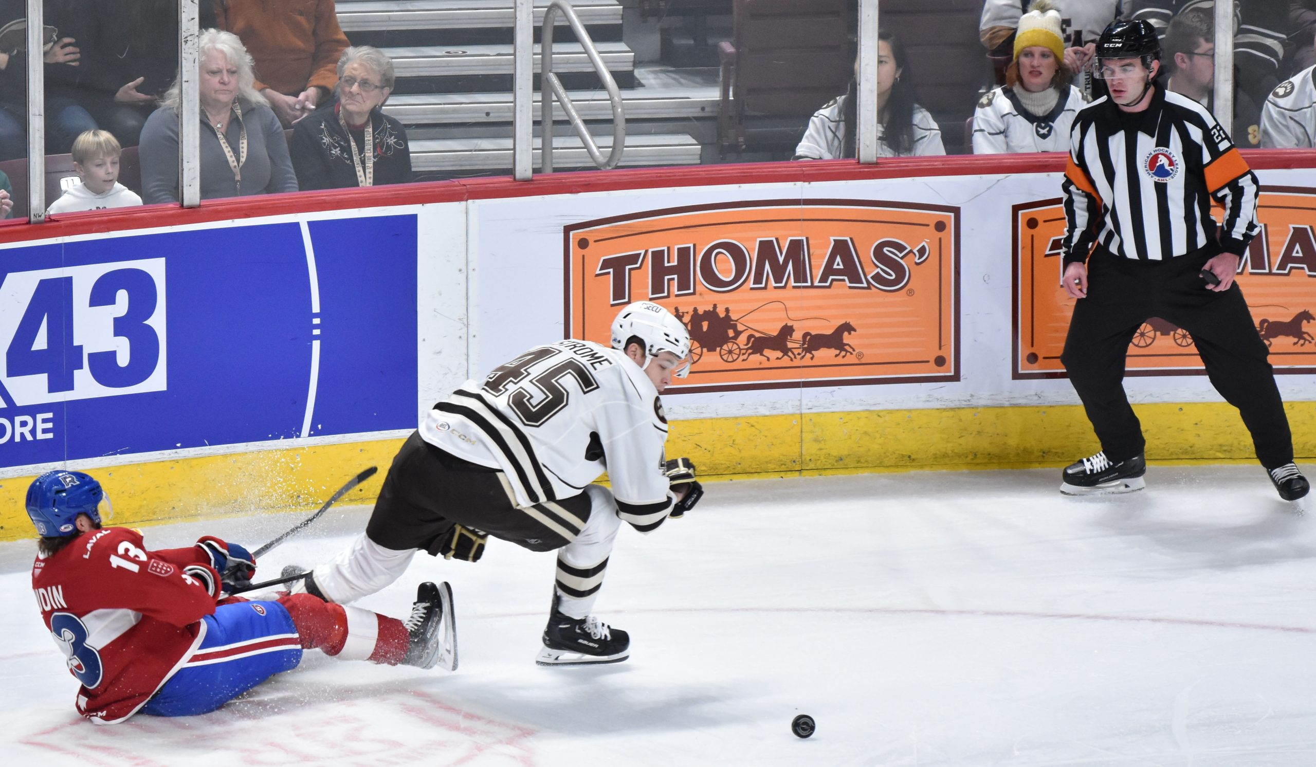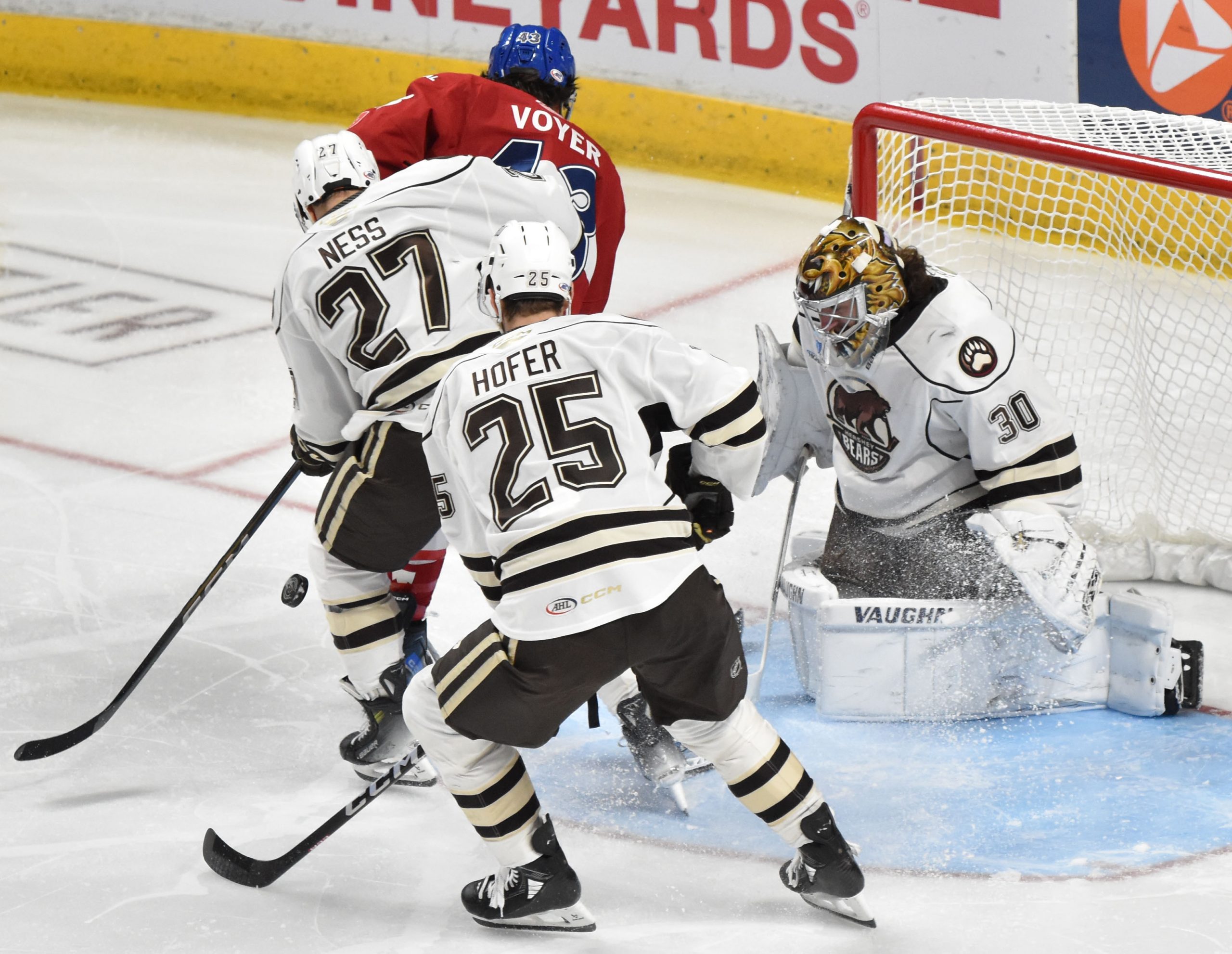 Roe then helped set up Hershey’s third goal of the frame, holding the puck in the offensive zone off a Laval clearing attempt on a Bears power play. Roe then moved it along to Ivan Miroshnichenko, who found Lapierre at the left circle, where it was sent back to Miroshnichenko, who buried his eighth of the season at 19:16 to close out the stanza, in which Hershey out-shot its opponents by a 14-5 margin, tying for the team’s largest shot differential in the first period this season.