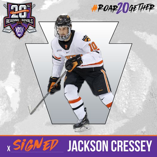 READING, PA – The Reading Royals, proud affiliate of the Philadelphia Flyers, announced the signing of 25-year-old forward Jackson Cressey to an ECHL standard player contract. This is Cressey’s second professional contract signed in North America.