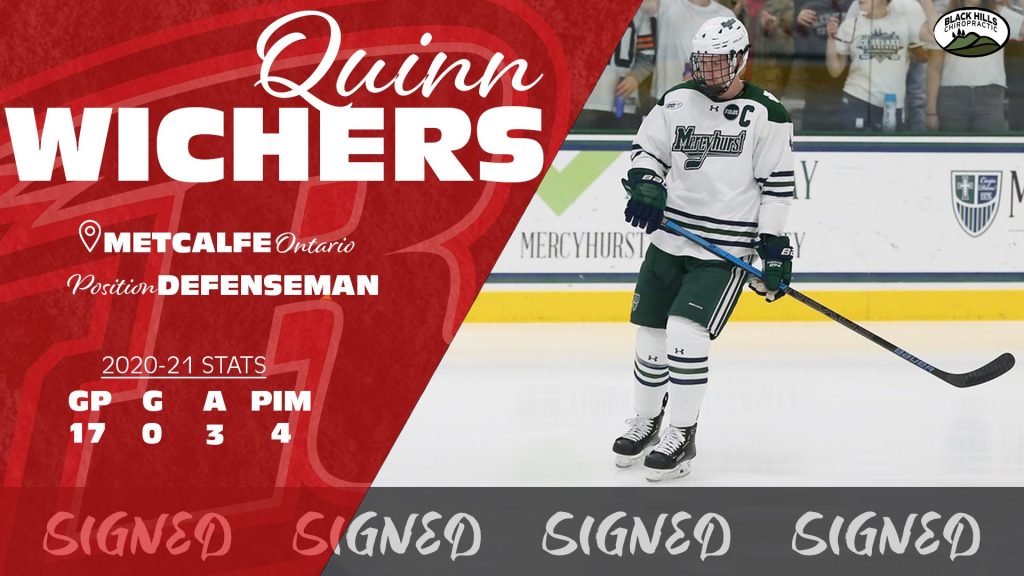 RAPID CITY, SD –The Rapid City Rush, proud ECHL affiliate of the NHL’s Arizona Coyotes, announced today via a Black Hills Chiropractic Roster Adjustment the addition of two rookies for the 2021-22 season. Defenseman Quinn Wichers and forward Calder Brooks have both signed on to join the Rush for their first full professional seasons.