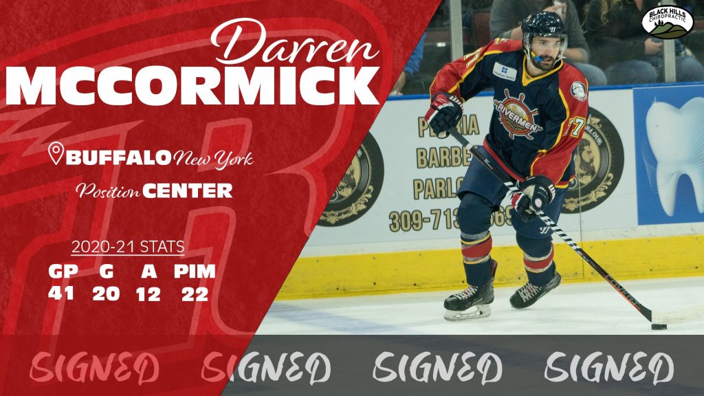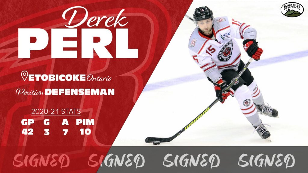 RAPID CITY, SD –The Rapid City Rush, proud ECHL affiliate of the NHL’s Arizona Coyotes, announced today via a Black Hills Chiropractic Roster Adjustment the addition of two players for the 2021-22 season as defenseman Derek Perl and forward Darren McCormick have each signed on to join Rapid City’s roster.