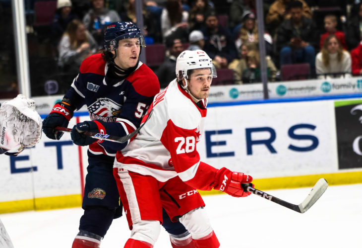 The first goal, scored at 17:02 in the middle period, saw Kalvyn Watson receive a pass from Mark Duarte to Lennox’s left. The winger wristed a shot over his glove to make it 2-1 Saginaw.