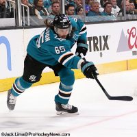 Tomas Hertl (48) looks to make a pass – Photo by Jack Lima