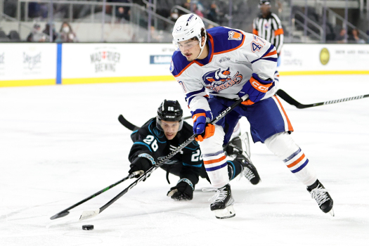 Andrew Agozzino (26) dives to stop a scoring attempt by Tyler Tullio (47) Published October 8, 2022 at 525 × 350 in San Jose Barracuda play pre-season game at new arena Andrew Agozzino (26) dives to stop a scoring attempt by Tyler Tullio (47) – Photo by Jack LimaAndrew Agozzino (26) dives to stop a scoring attempt by Tyler Tullio (47)