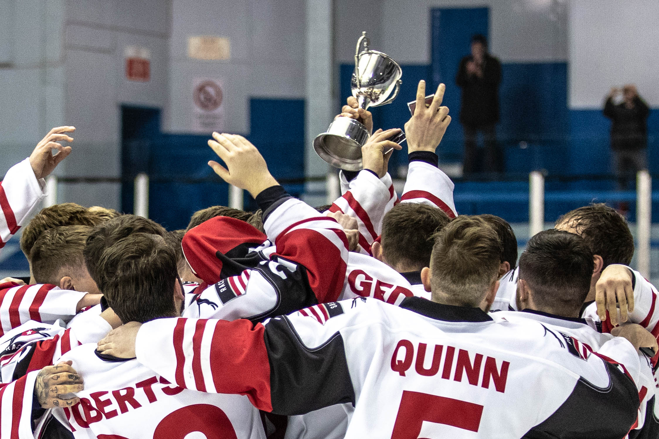 Murrayfield Racers celebrated being presented with the Scottish National League trophy with an 8-1 victory over Kilmarnock Thunder – Ross Borwick (2), Michael Ireland (2) and Martin Cingel (2) topped the scoring for the home side.