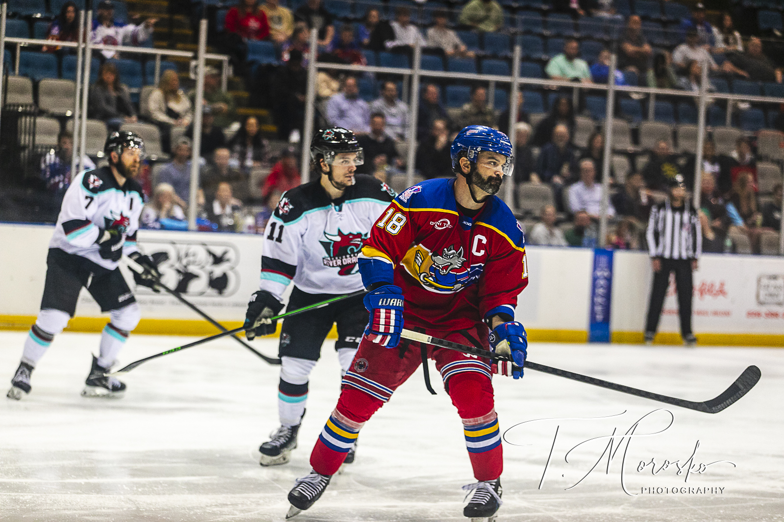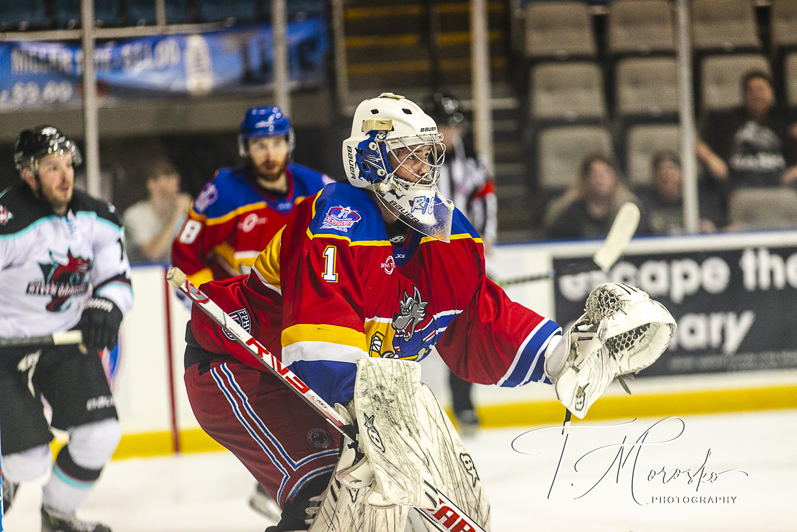 Much to the amazement to all in attendance, the overtime went just at the regular play did. The ice warriors marched up and down the ice and the guardians of the net were blocking all entrance to the net. As the time down and it was starting to look like a possible shoot out was coming. #18 (F) Capt Justin Barr slaps one in to the back of the net. This intense playing veteran pulled it out in last few minutes of over time.  He was assisted by #27 Connor Lind and #11 Lucas Helland.This was Barr’s 8th goal of the season he has been netting a goal a game in these past few weeks.  Sea Wolves Slay the Dragons in over time earning them more points to march up to secure a playoff bid.