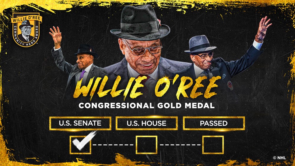 “Willie O’Ree has been committed to hockey for decades and his impressive list of accolades and achievements is reflective of his dedication to inspire young people across America,” said Kim Davis, NHL Senior Executive Vice President of Social Impact, Growth Initiatives and Legislative Affairs. “He is first-known for being a trailblazer on the ice, but he will forever be celebrated for his tireless work off the ice, providing opportunities for boys and girls to play hockey and, more importantly, become better community citizens. This is an exciting step forward bringing us closer to honoring him with a Congressional Gold Medal, and we hope the positive momentum continues in the U.S. House of Representatives.”