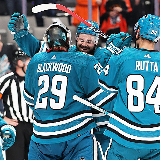 Blackwood secured the Sharks’ first win with 15 saves in the third period.