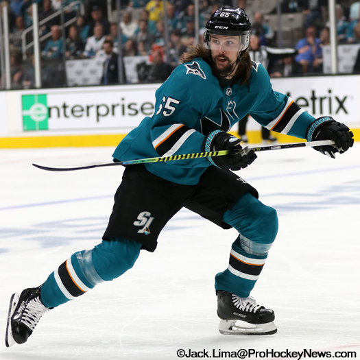 “I was happy that they kept icing the puck,” Couture said. “I was a little tired, I had been out there for 30 minutes. [Alex] Pietrangelo kept icing it, gave me some time to catch my breath. I think a couple of us were tired, so we were happy that he kept icing it. [Joe Thornton] made a good play on the wall, kind of a battle, their guy threw it at the net, we were able to outnumber him. The puck came loose a little bit, and I think I got my stick on it before [Jordan] Binnington could cover it.”
