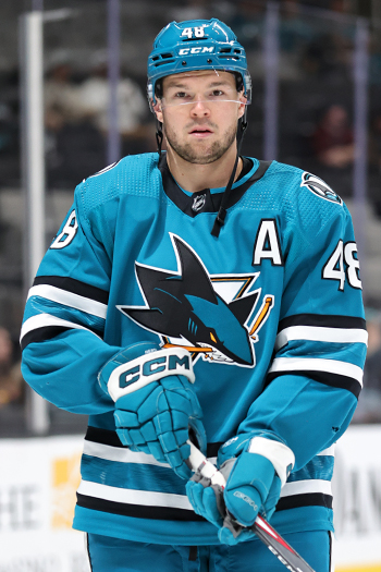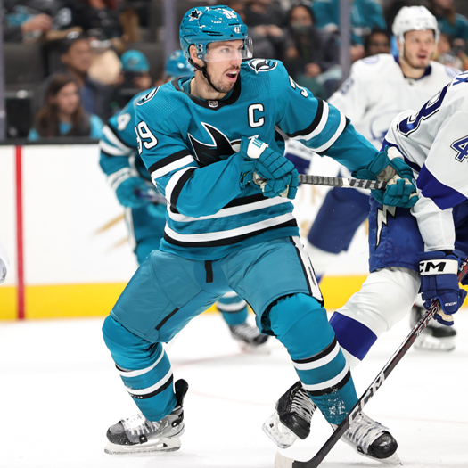 Tomas Hertl (48) takes a shot on goal in front of defenseman Victor Hedman (77) – Photo by Jack Lima