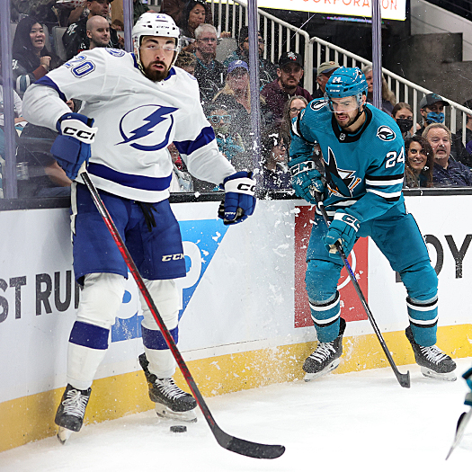 In San Jose, the Tampa Bay Lighting’s Nikita Kucherov hit for the game-winner with 57 seconds left in the third period for a 4-3 win over the Sharks.