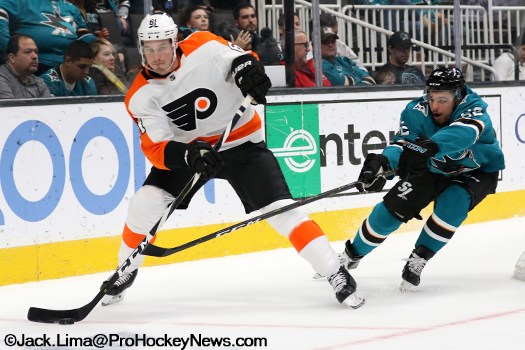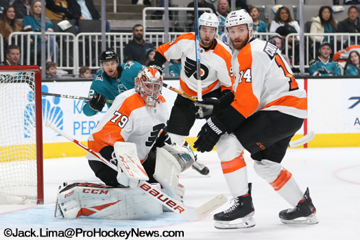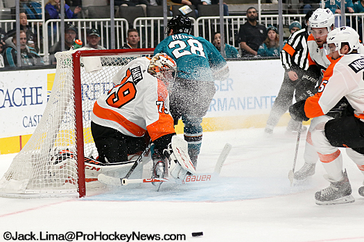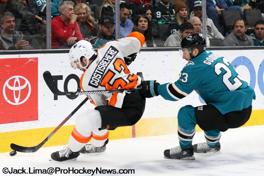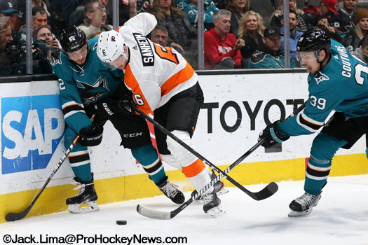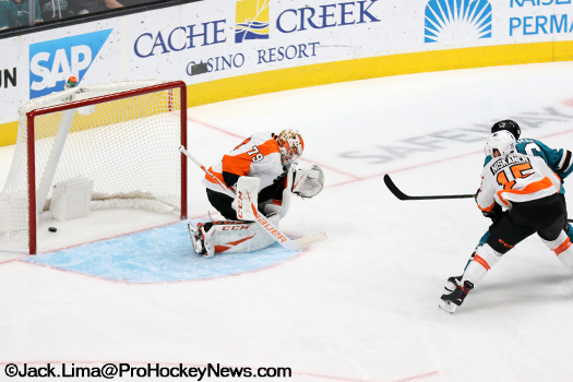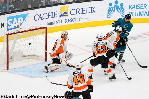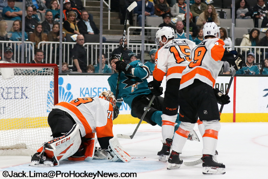 Ivan Provorov had a power play goal for the Flyers in the third to cut the Sharks lead to 3-1.