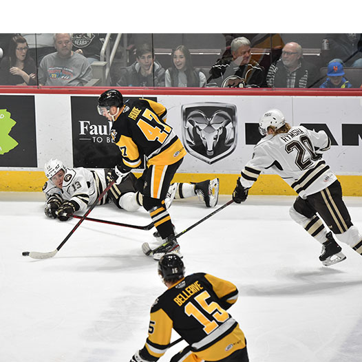 Gersich started the scoring late in the opening frame after burying a centering pass from Mike Vecchione at 17:28. Mason Morelli earned the secondary helper and later assisted again on Gersich’s second goal of the night. Shots after 20 minutes were 15-11 Hershey.