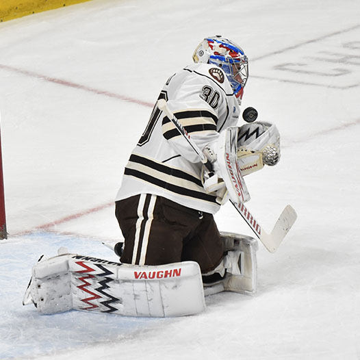 In the final frame, Gersich struck for a second time at 15:04 to finish the scoring line. Morelli sent the puck near the frame, and Gersich squeezed the second effort across the goal line for his eighth goal of the season. Final shots on goal totaled 36-20 Bears.