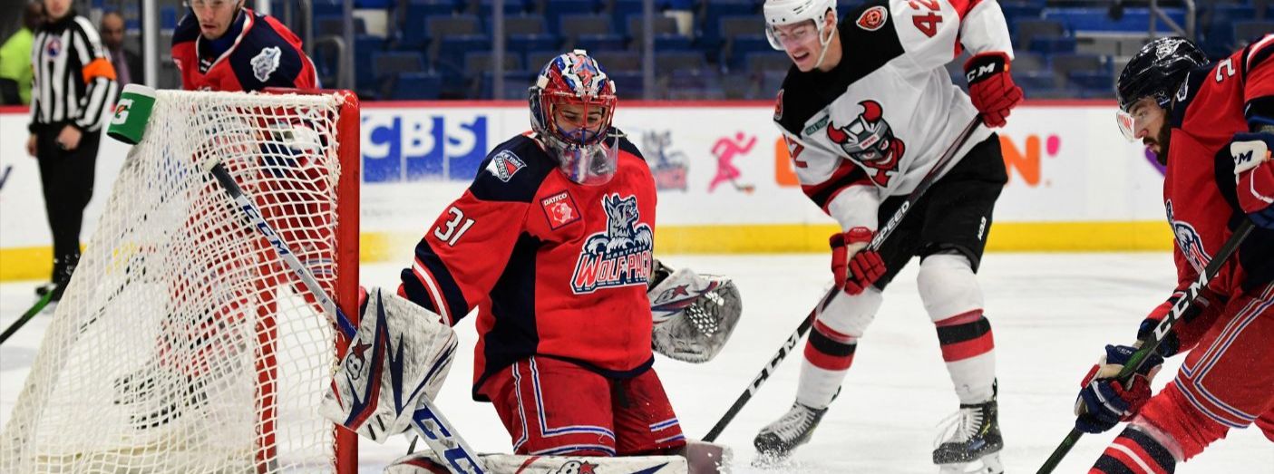Igor Shesterkin headlined a 3-1 Wolf Pack victory over the Binghamton Devils with a brilliant 29-save performance, and Tim Gettinger had the game-winning goal and an assist, Wednesday night at the XL Center.