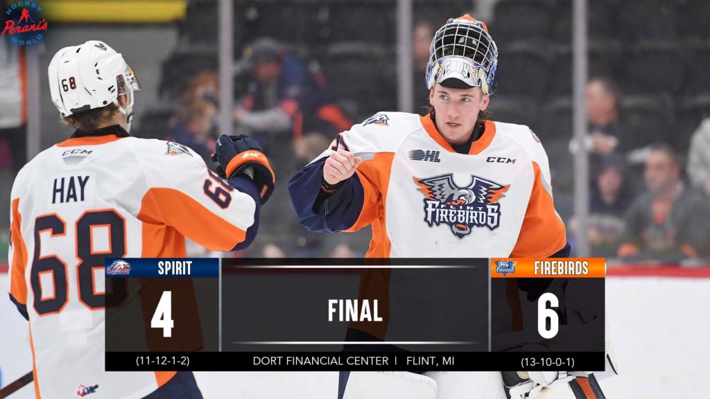 The Spirit-led 2-1 after the opening 20 minutes, despite being outshot by the Firebirds 11-7. Saginaw won 10 of 16 first-period faceoffs and killed off both penalties taken successfully.