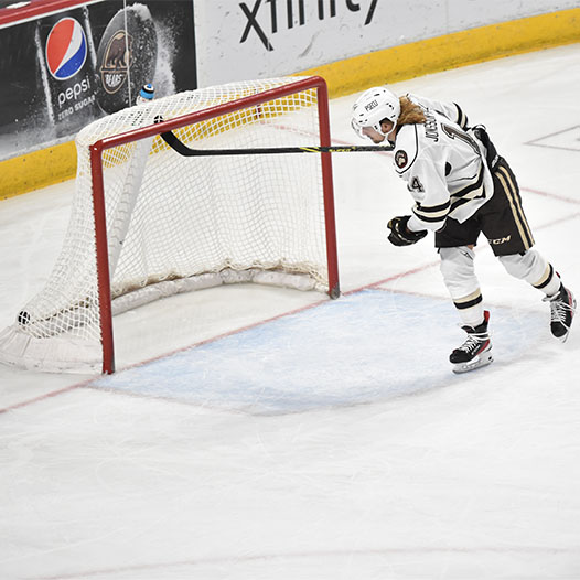 Snively’s opening goal came after burying a centering pass from Garrett Pilon off the rush. Axel Jonsson-Fjallby recorded the secondary assist. Shane Gersich, the overtime hero from last Sunday, doubled Hershey’s lead at the 5:00 mark. Gersich finished a loose puck sitting in the blue paint, and Dylan McIlrath earned the secondary helper for his 100th career professional point. Shots on goal were 15-4 Hershey with the Chocolate and White leading 2-0 after 20 minutes.