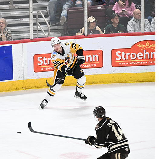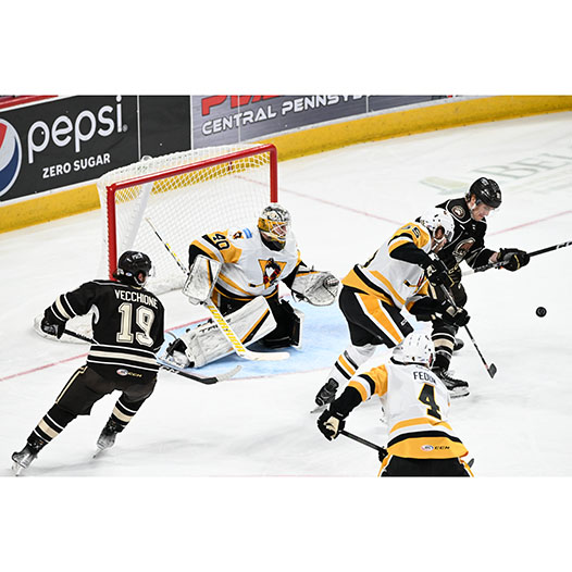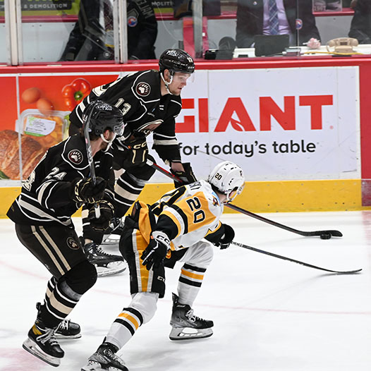 Ethen Frank put Hershey up 2-1 at 6:02 of the second period with a tally on the man advantage when he blasted a one-timer at the left circle from Connor McMichael and Sgarbossa for his 24th of the season.
