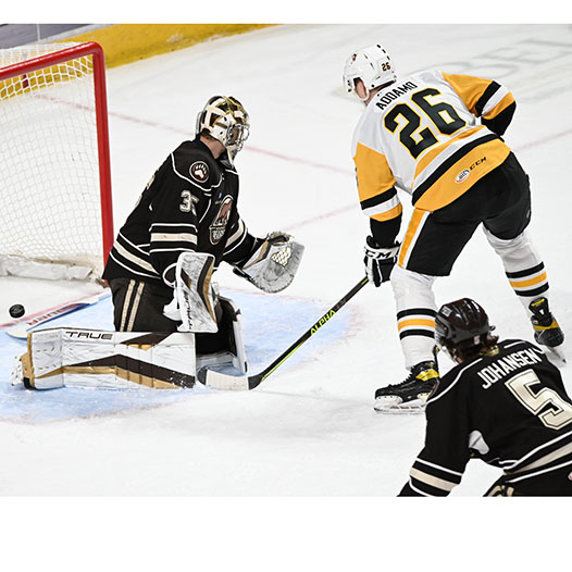 The game remained tied late into the third period, but with just over four minutes remaining in regulation, Sgarbossa found Snively, who drifted through the right circle and threw a shot on net that squeaked through the legs of Tokarski for his second of the evening and the eventual game-winner. Mike Vecchione earned a secondary assist on the goal, while Sgarbossa’s third helper of the night gave him his 400th professional point.