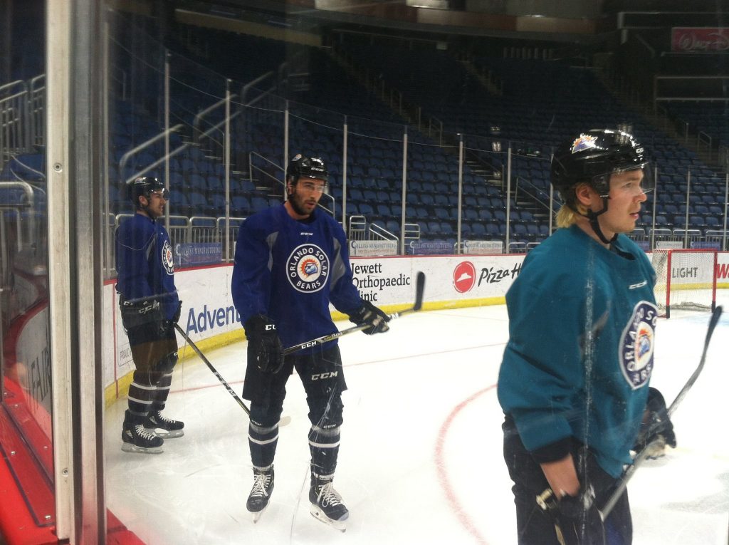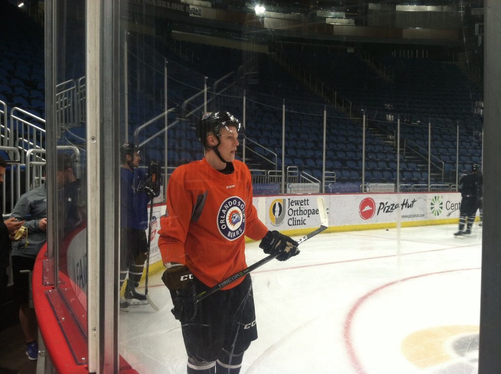 Solar Bears forward Troy Bourke waits his turn during drills Monday morning at the Amway Center